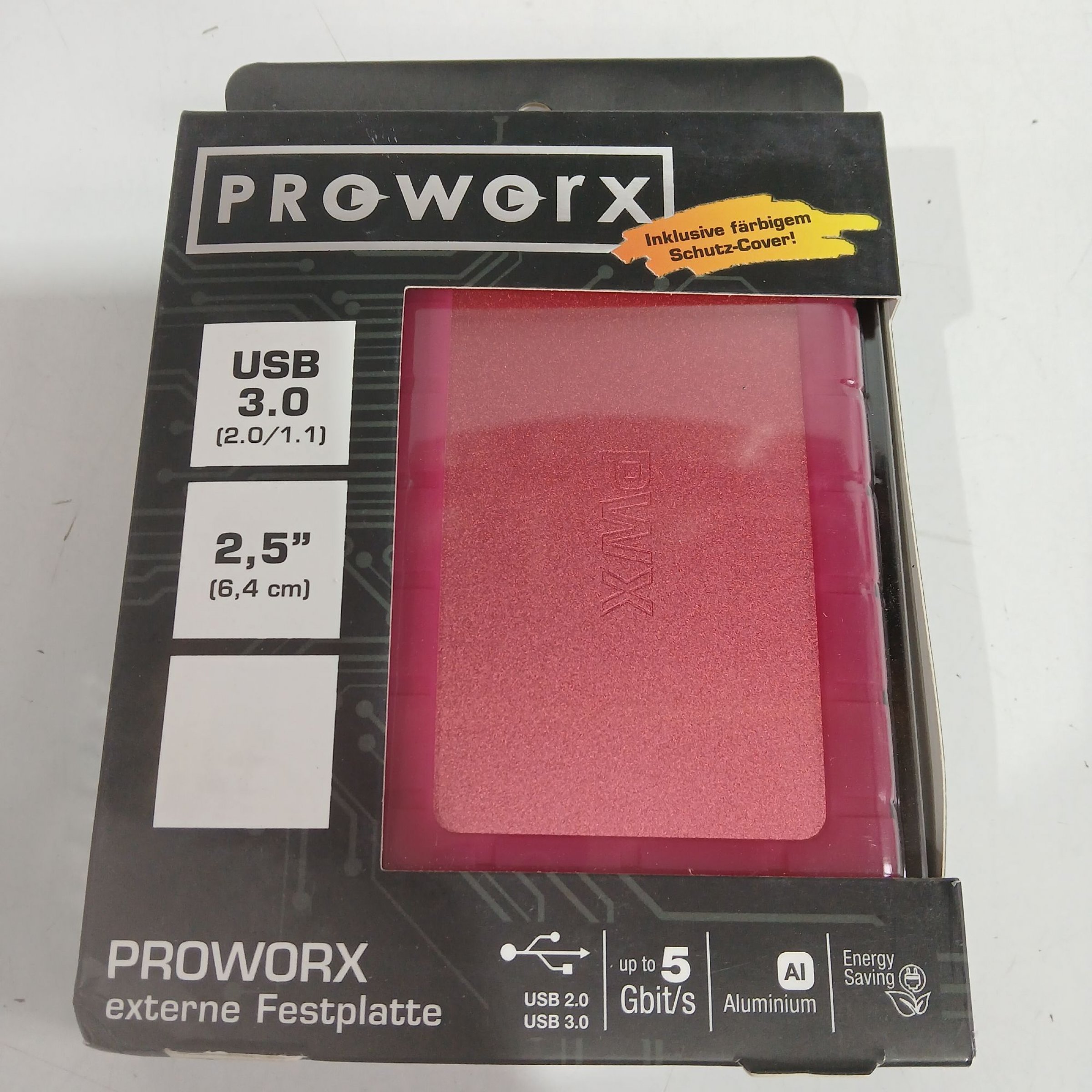 1 Stk. Proworx externe Festplatte USB 3.0 rosa/rot