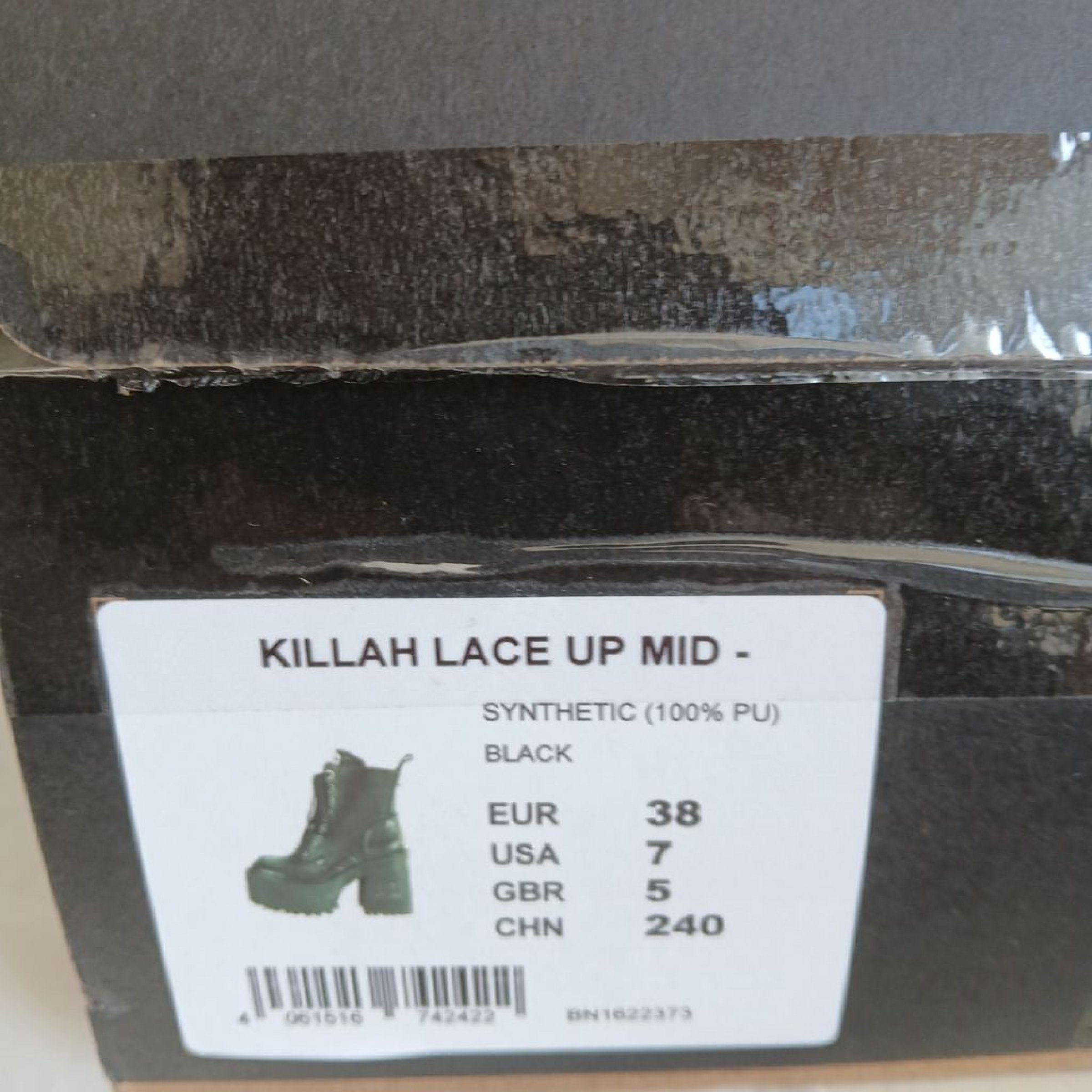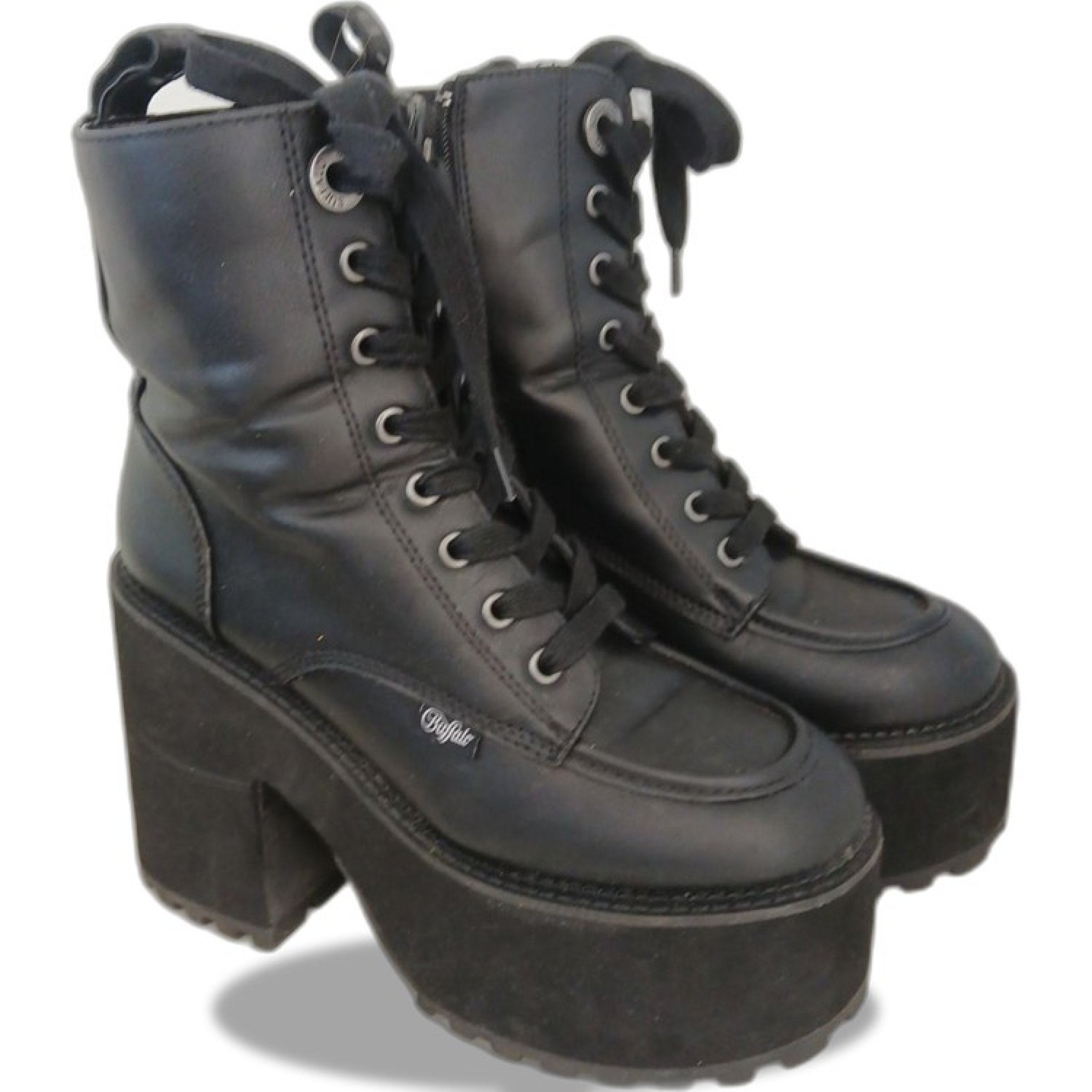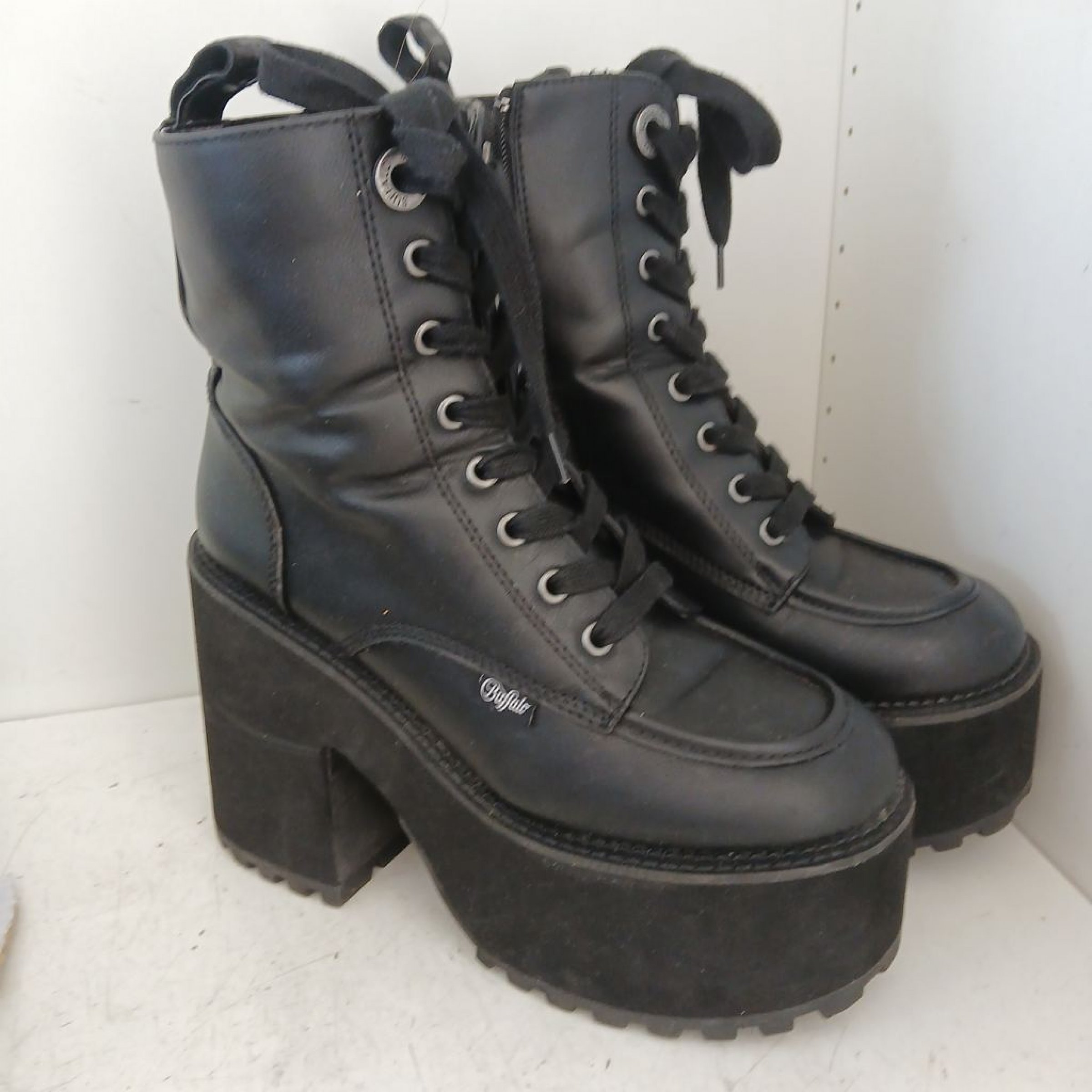 1 Paar Buffalo Killah Lace Up Mid Stiefel Plateau Schwarz