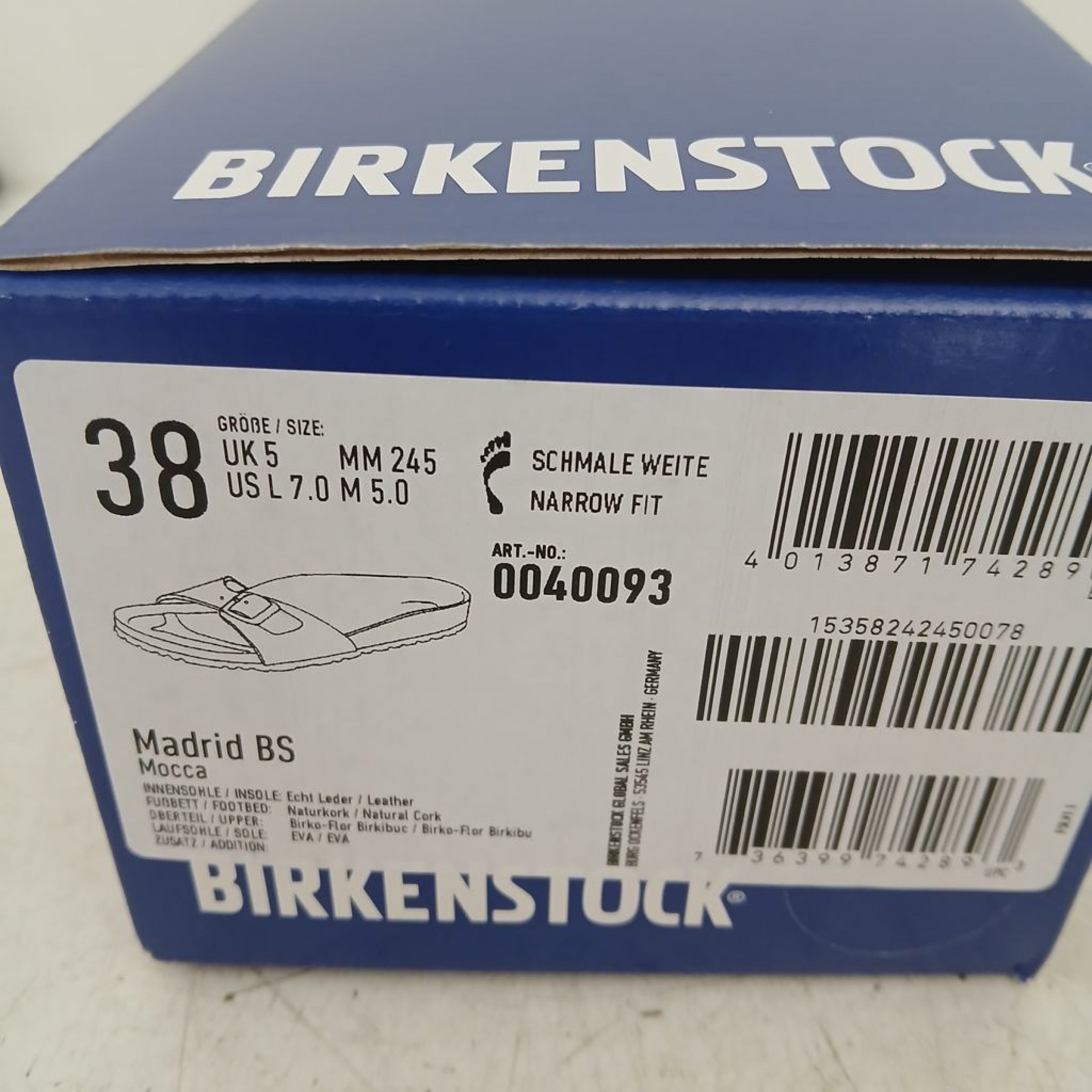 Größe: 38, UK 5, US L7. 0 M5. 0, schmale Weite