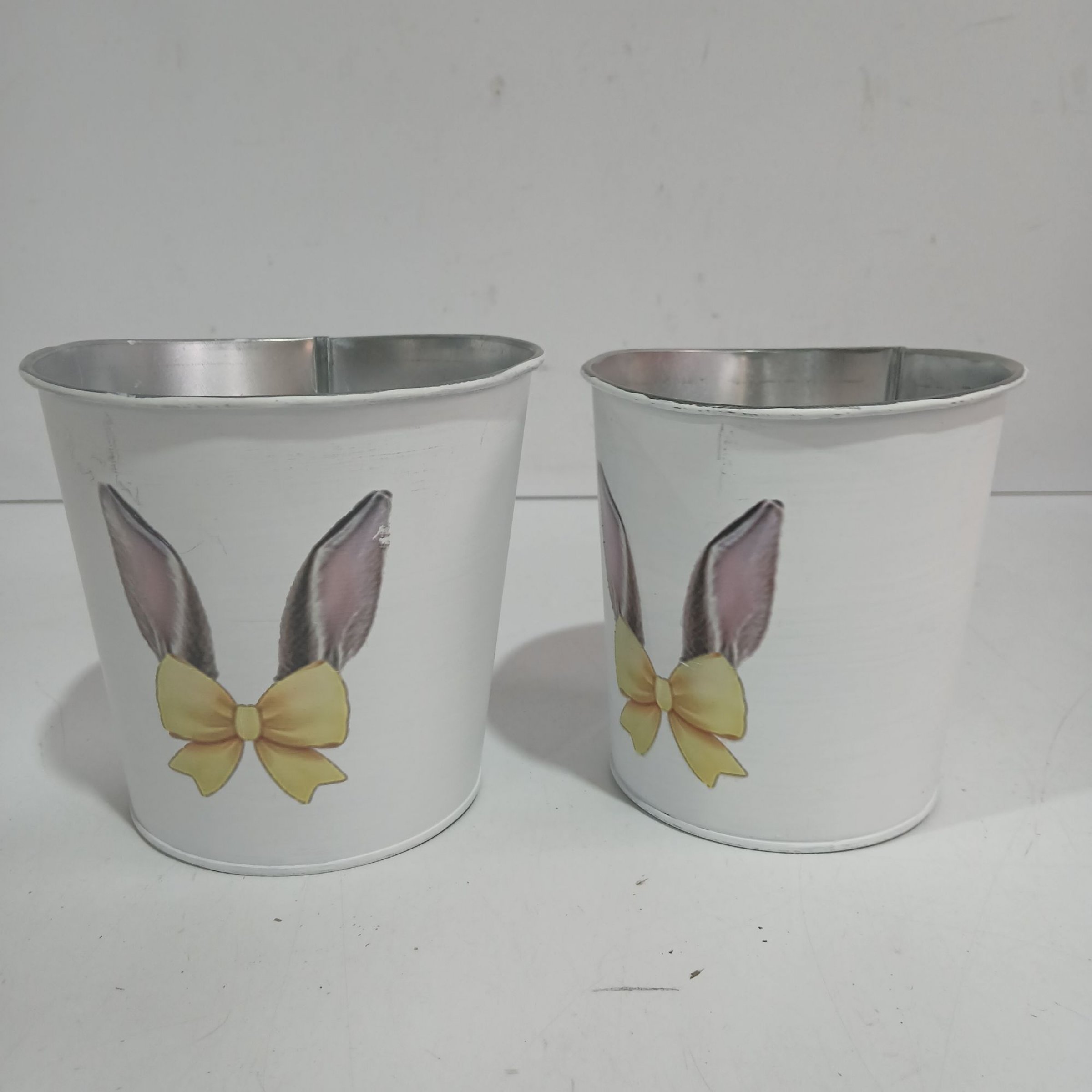 2 Stk. Metall Töpfe Hase ca. 13cm