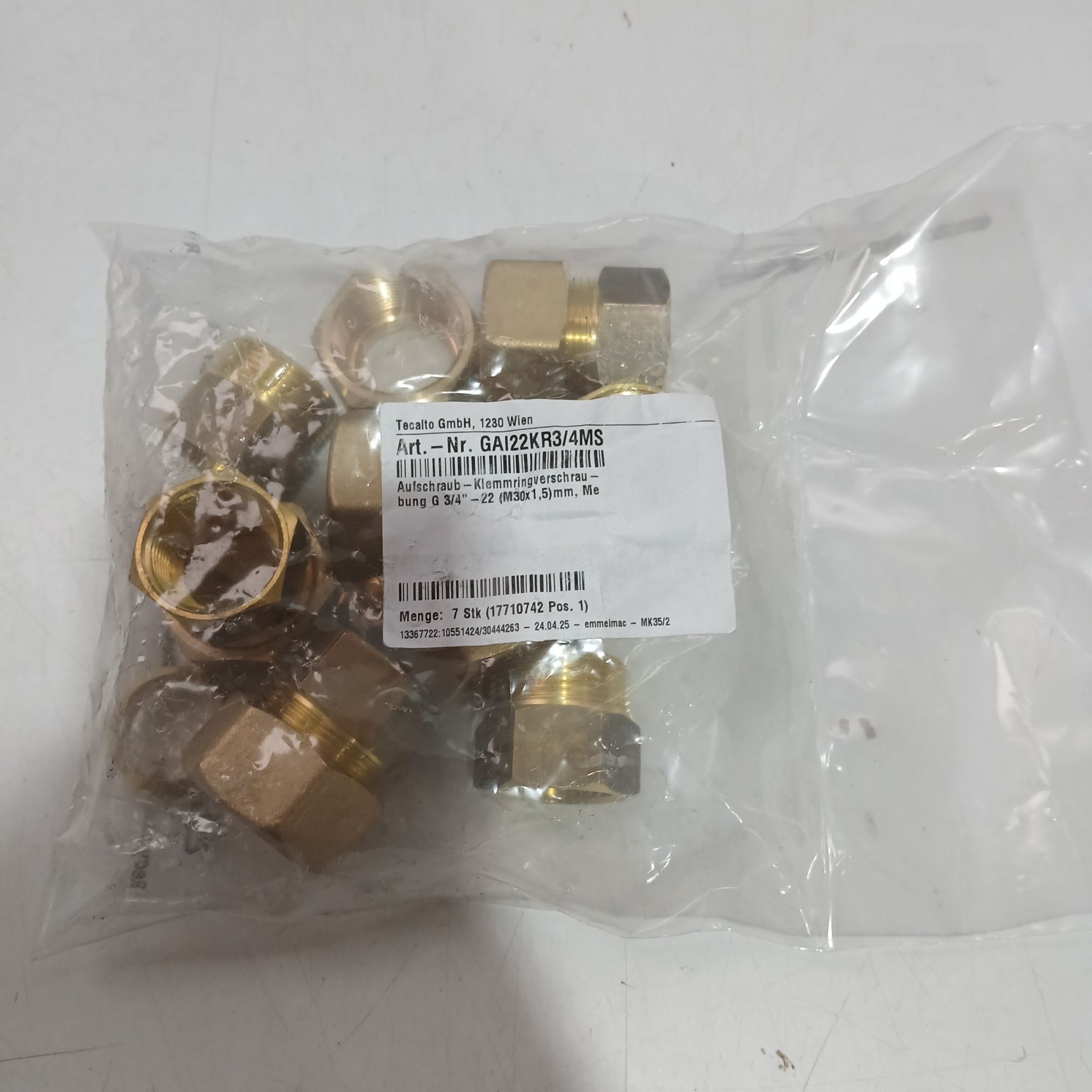 1 Packung Aufschraub-Klemmringverschraubung M30x1,5mm 7Stk