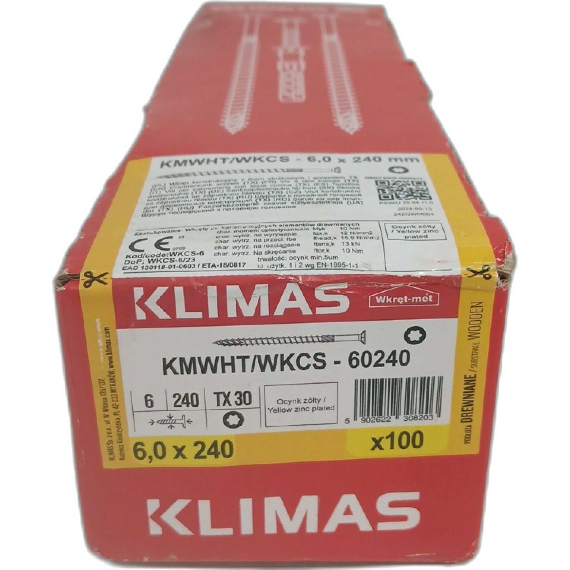 1 Packung Klimas Schrauben 6,0x240 100Stk KMWHT/WKCS-60240