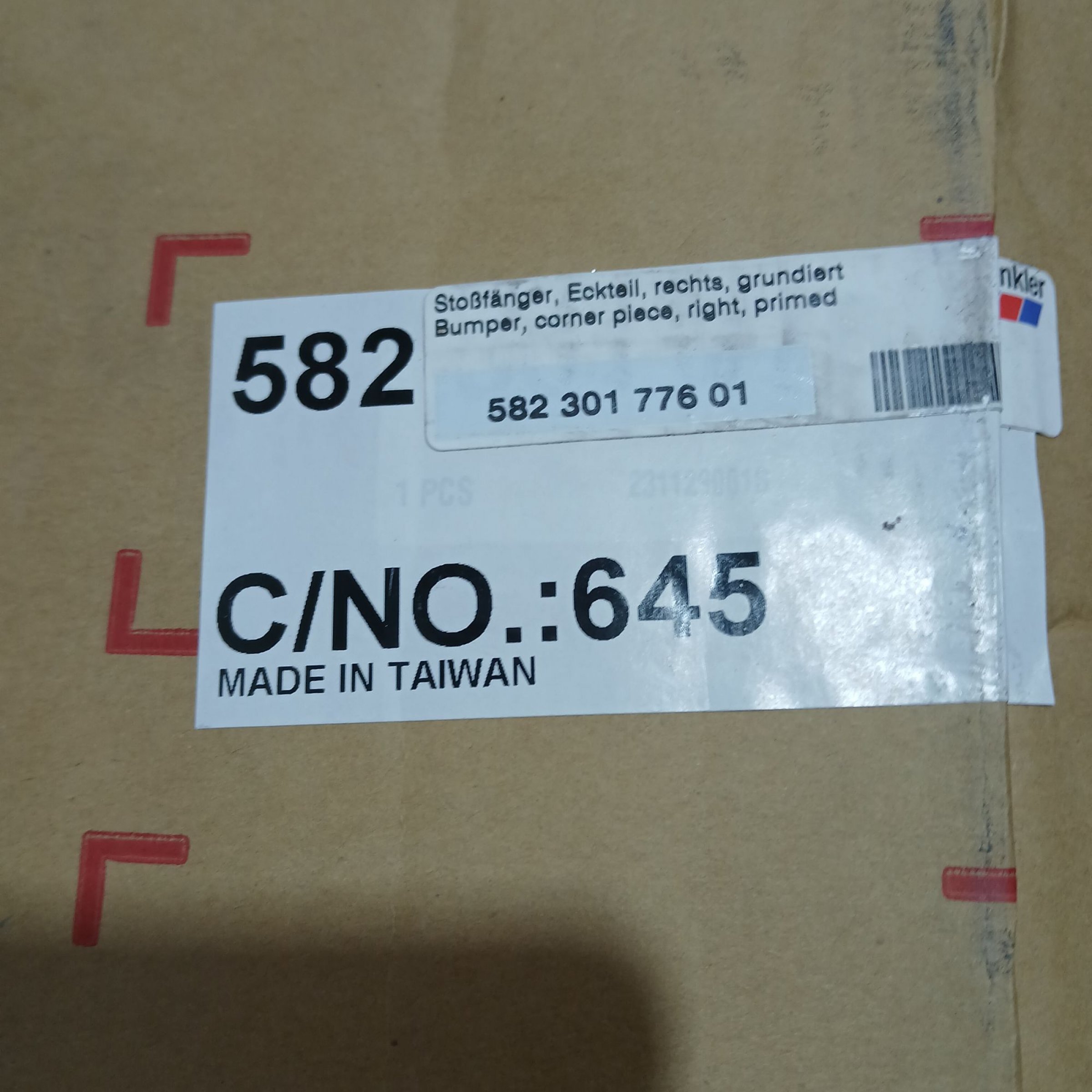 1 Stk. Winkler Stoßfänger Eckteilbrechts grundiert 582 301 776 01