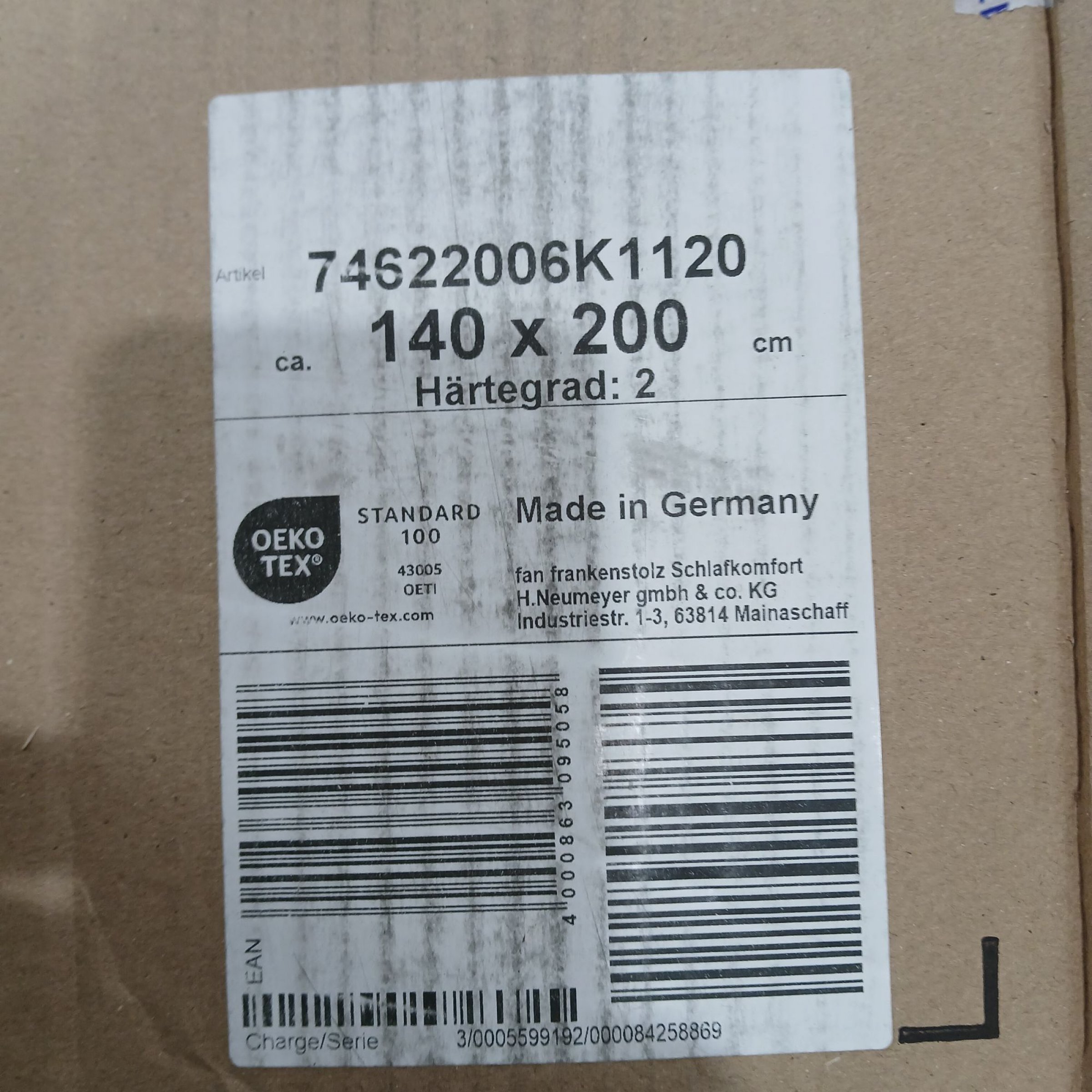 1 Stk. Matratze 140x200 H2 74622006K1120 Fan Frankenstolz