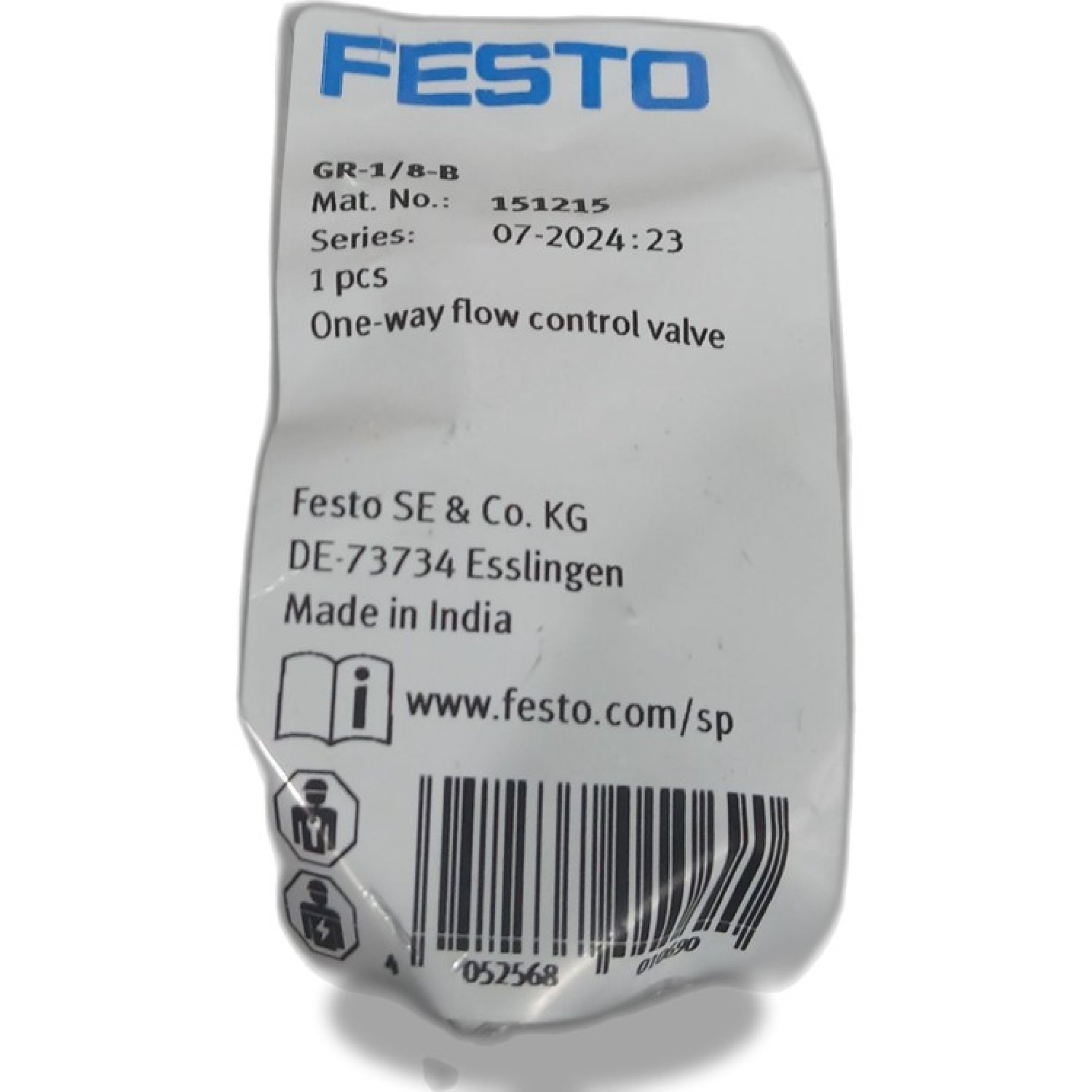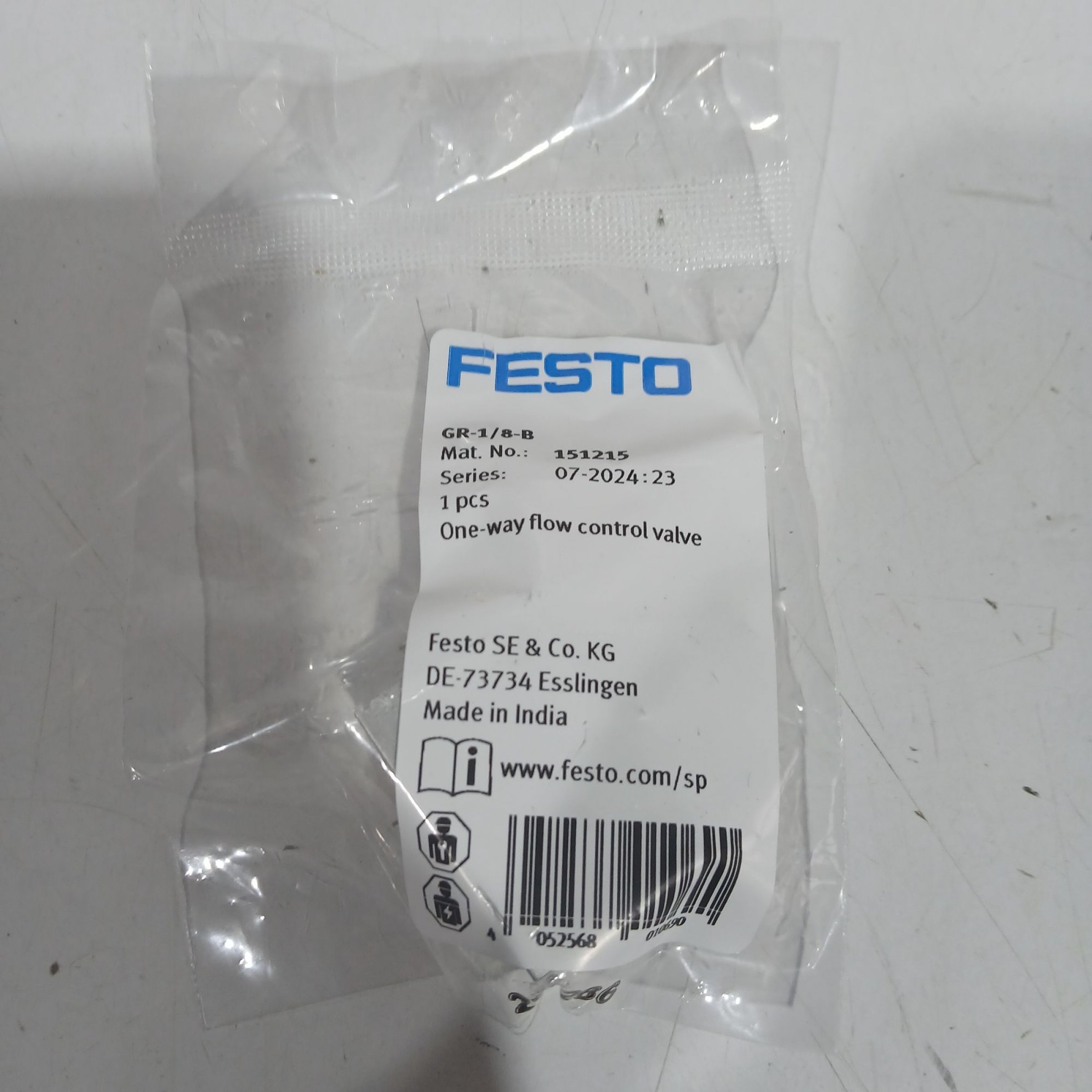 1 Stk. Festo one-way flow control valve GR-1/8-B