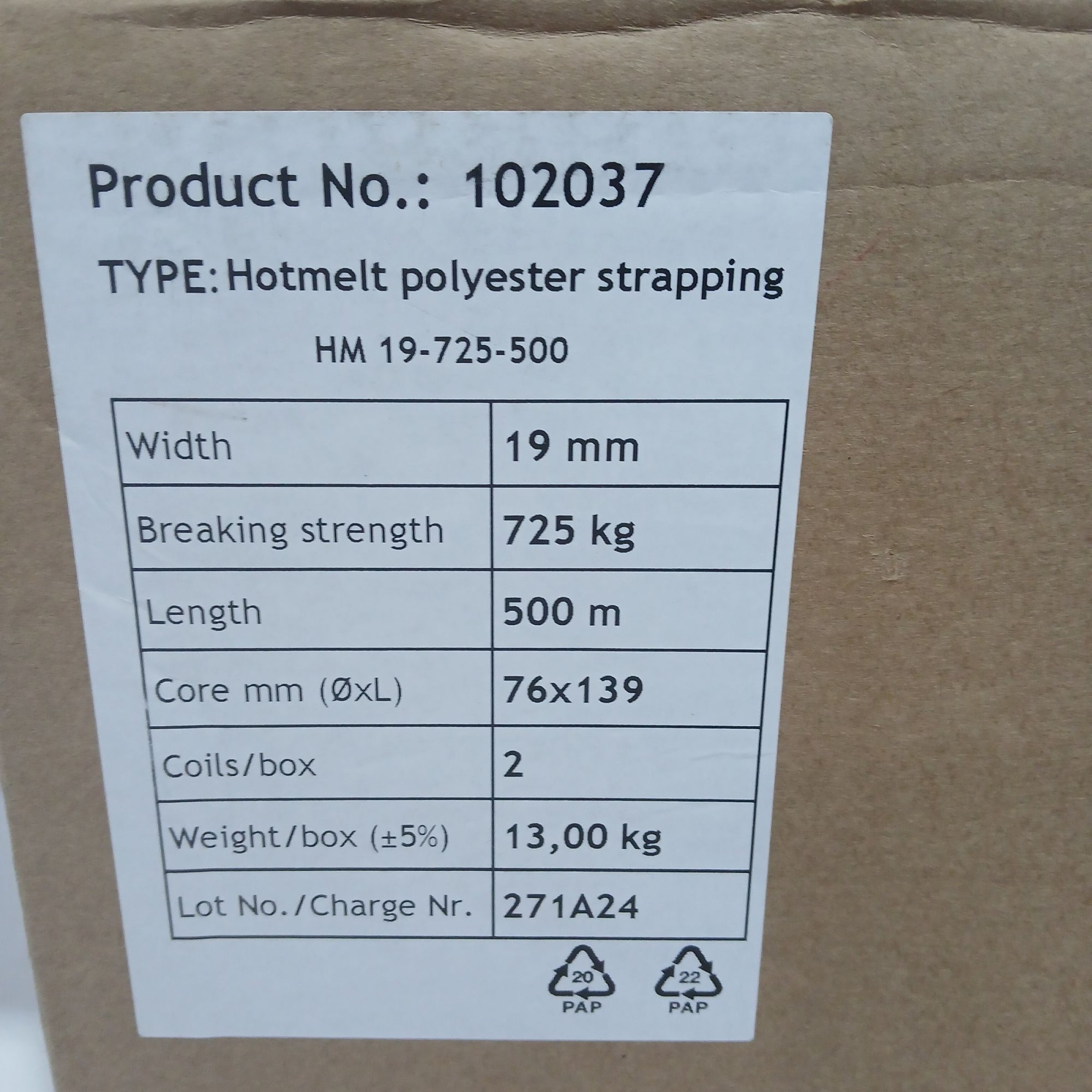 1 Packung Hotmelt Polyester Strapping 19mm 500m 2Rollen