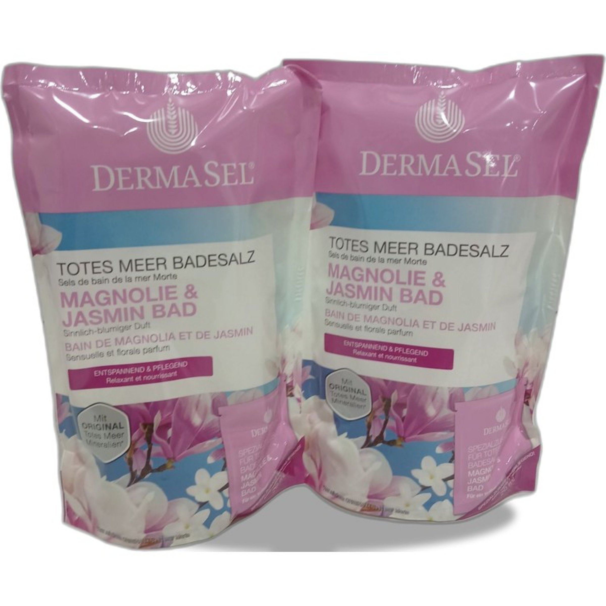 1 Set Dermasel Badesalz Magnolie & Jasmin 2Stk 400g +20ml
