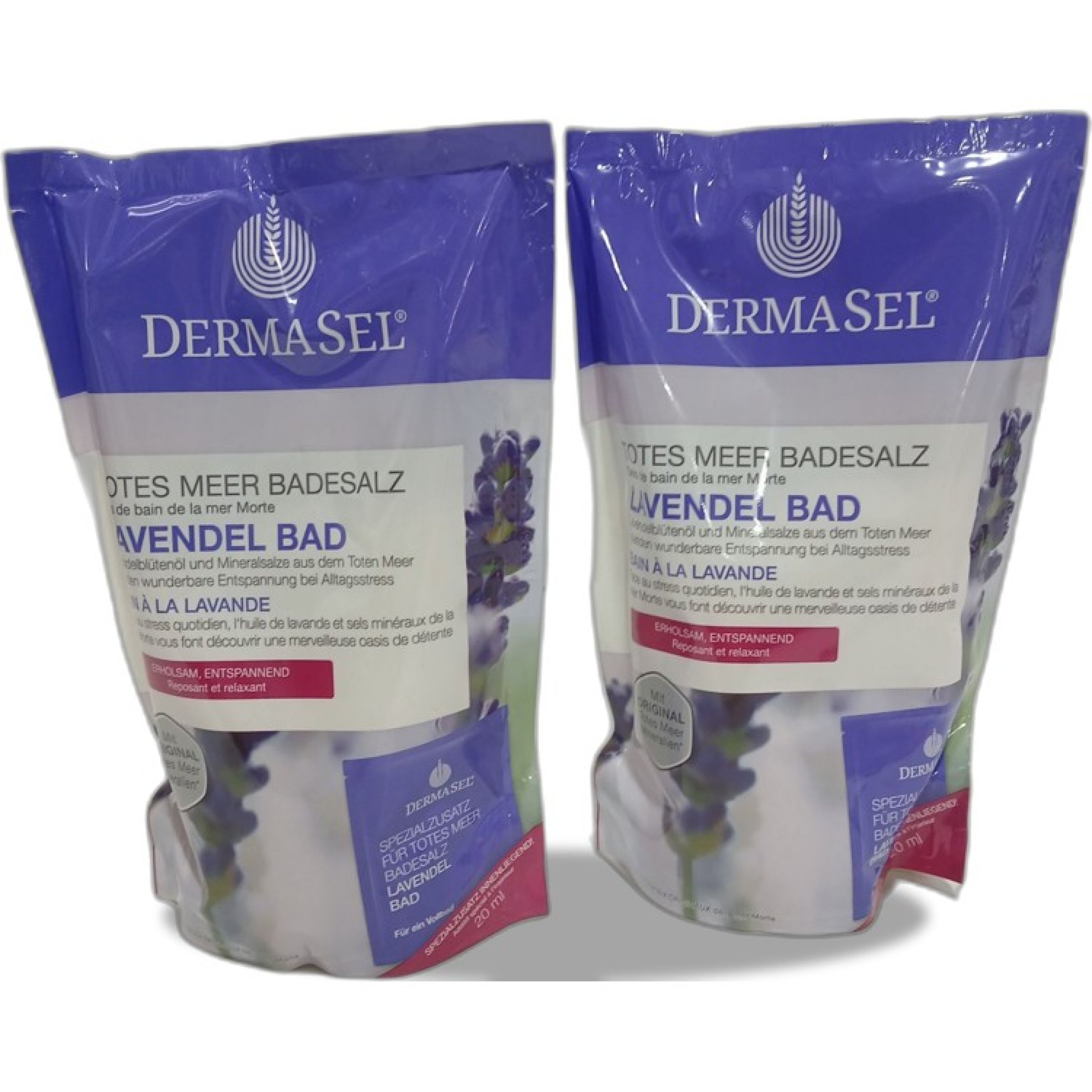 1 Stk. Dermasel Badesalz Lavendel Bad 2Stk 400g+20ml