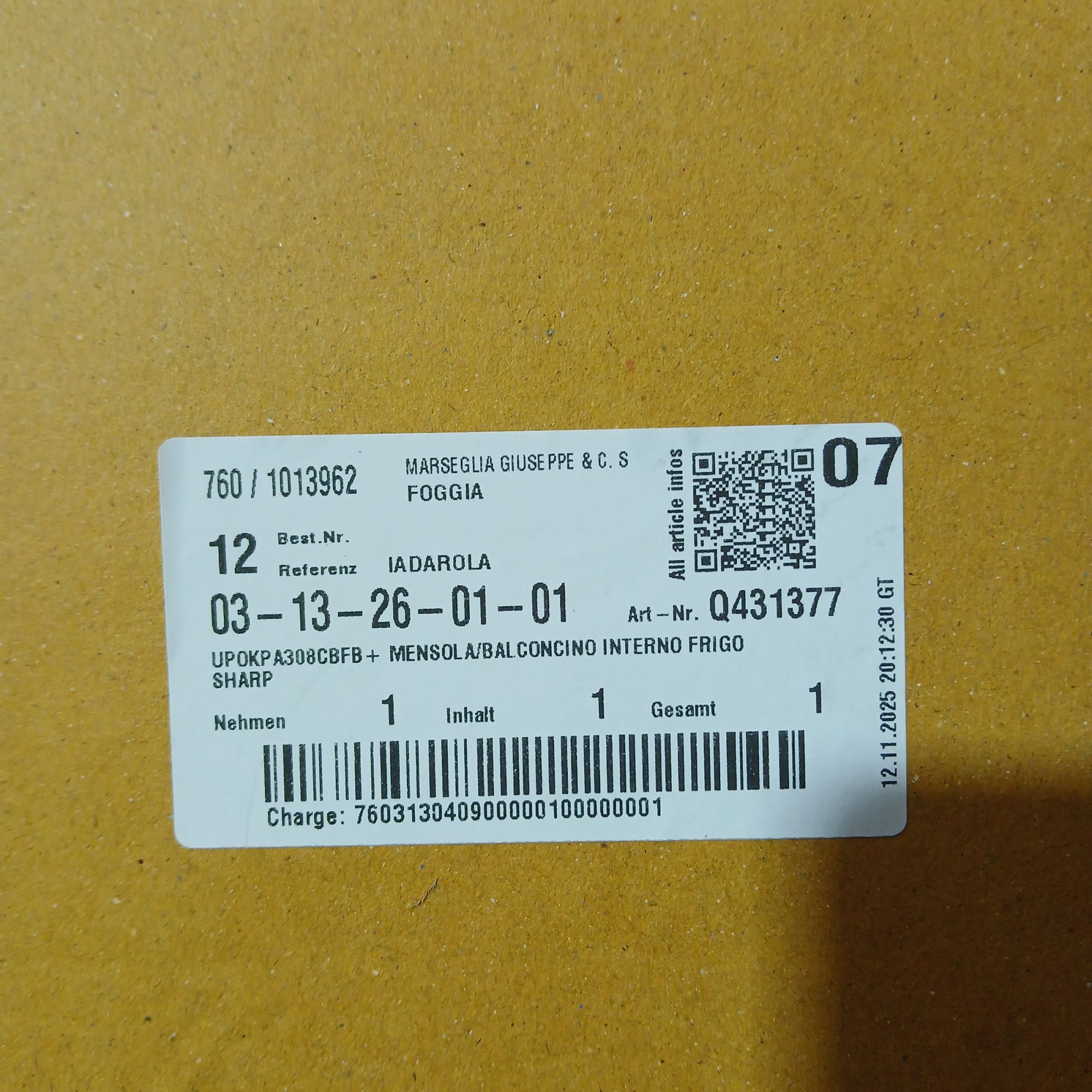 1 Stk. Kühlschrank Türfach Q431377