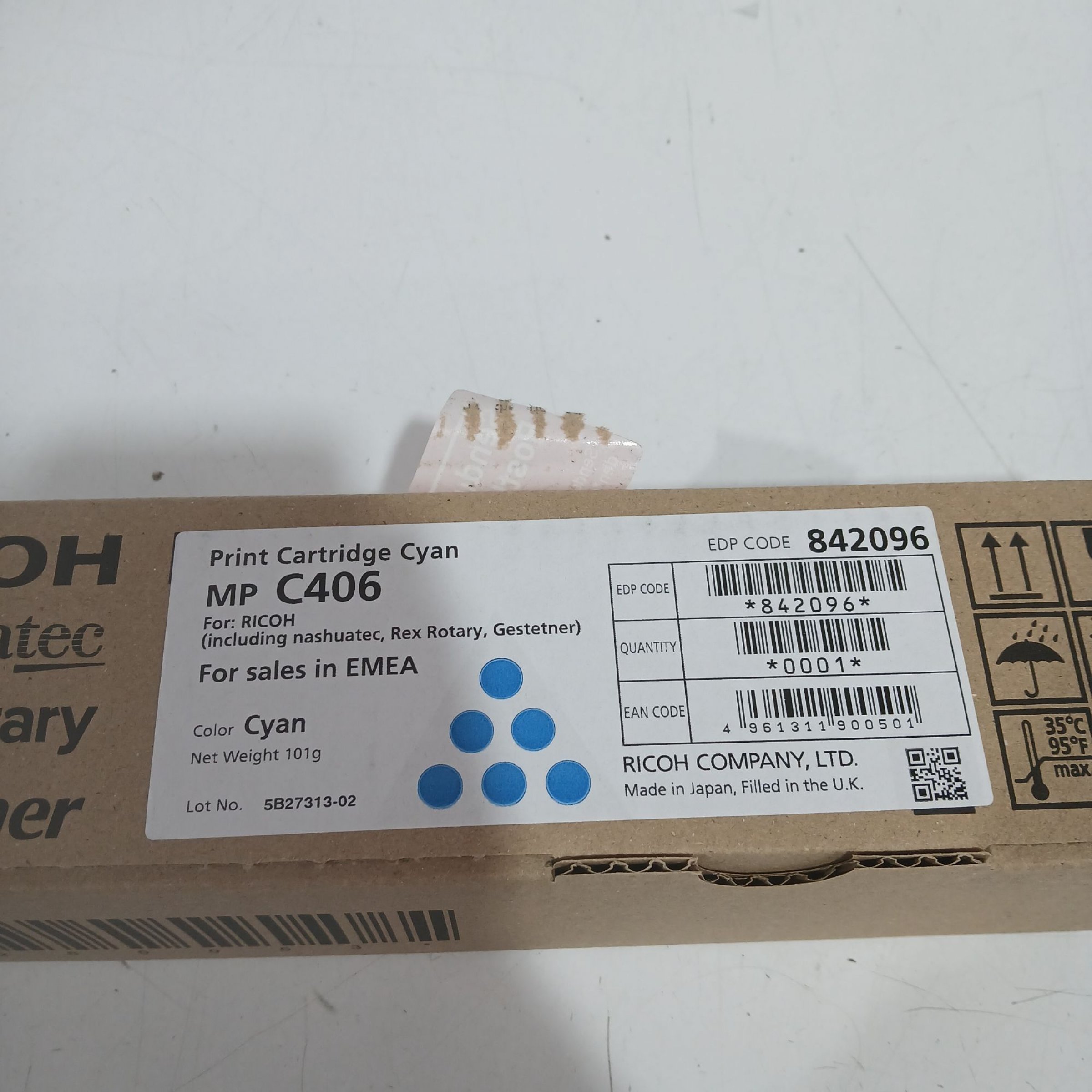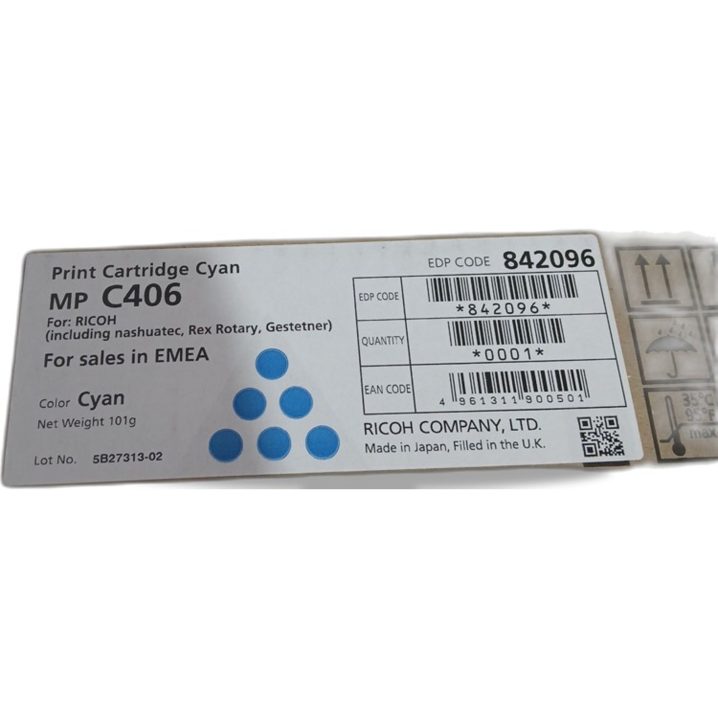 1 Stk. Ricoh Print Cartridge Cyan MP C406 101g