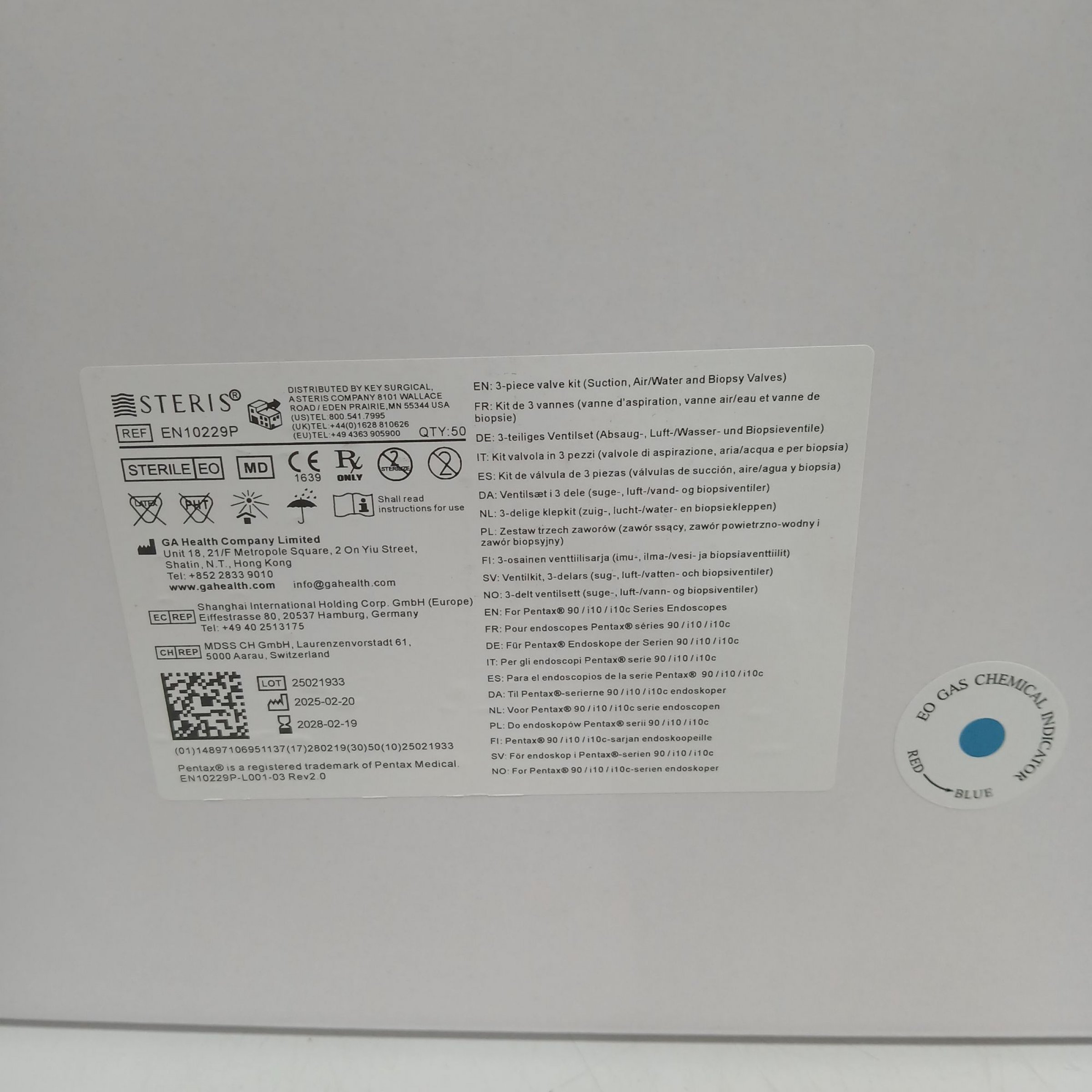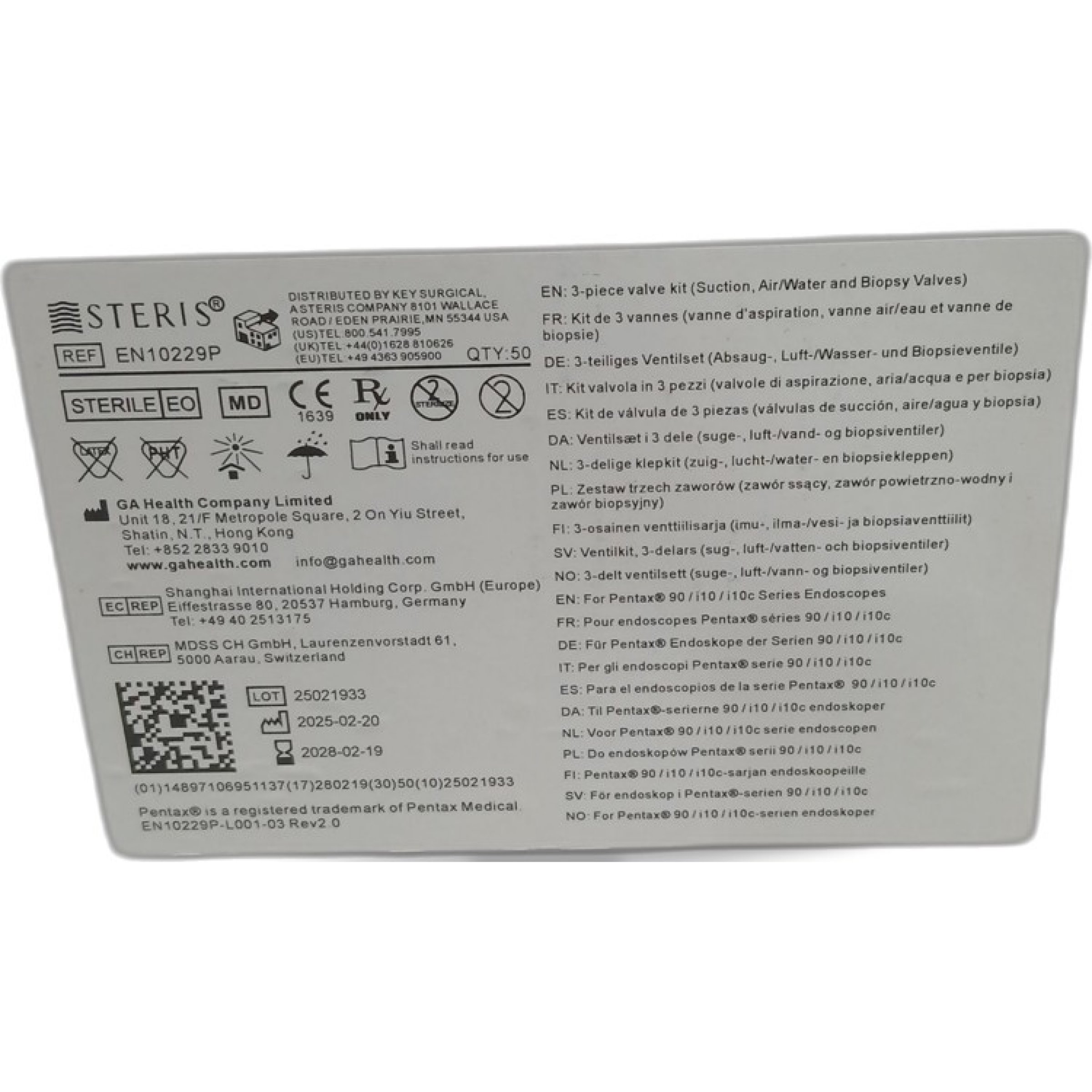 1 Packung Steris 3tlg. Ventilset(Absaug-, Luft/Wasser- und Biopsieventile) 50Stk