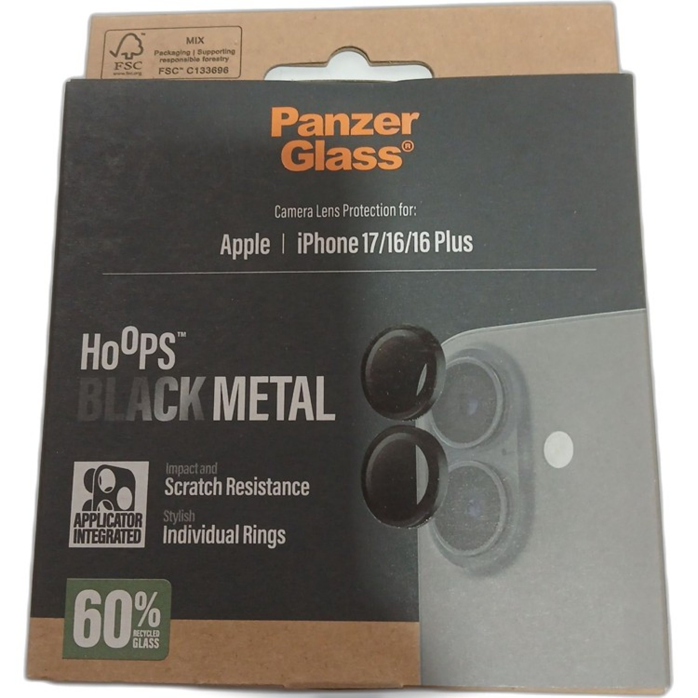1 Stk. Panzer Glass Camera Lens Protection für Apple iPhone 17/16/16 Plus Hoops Black Metal