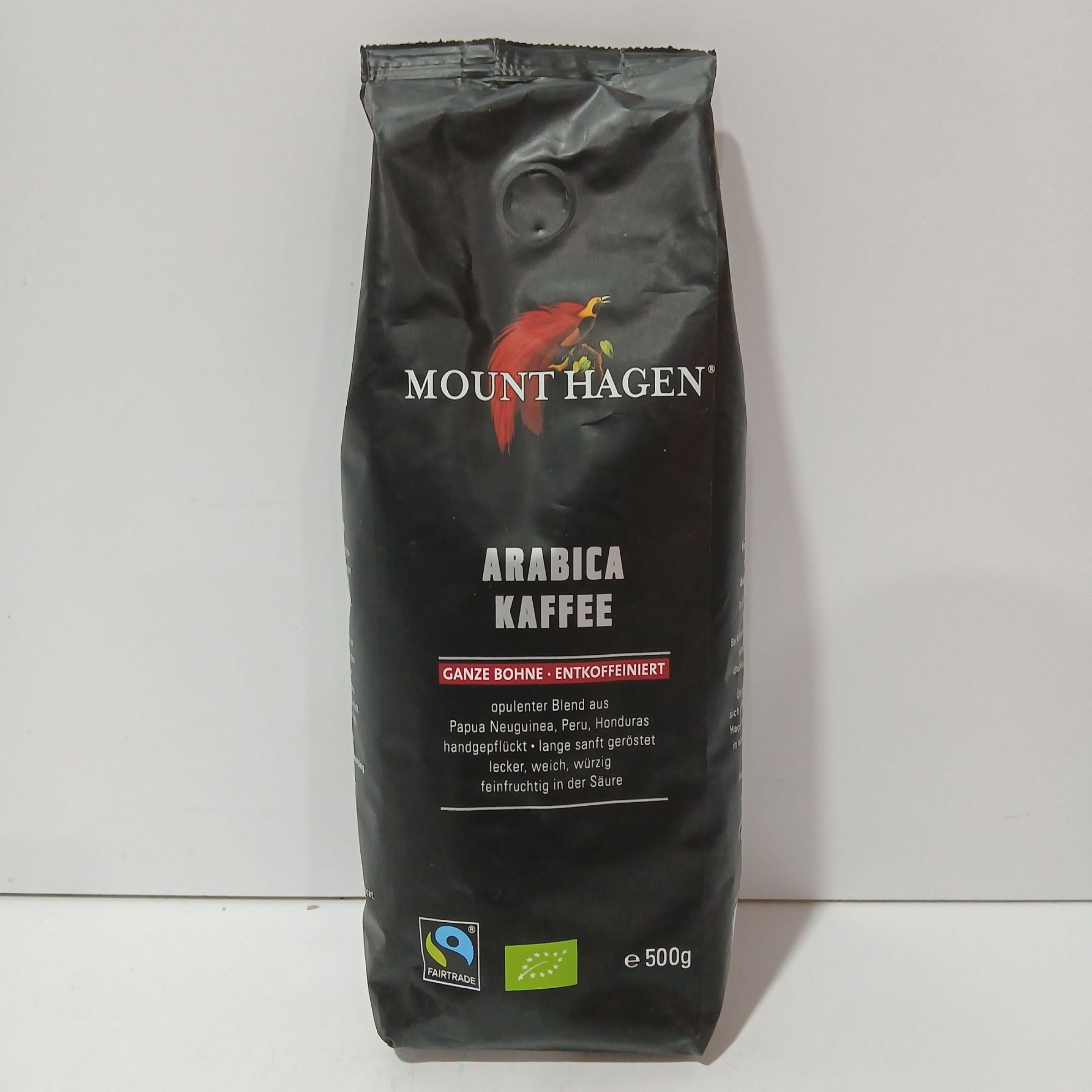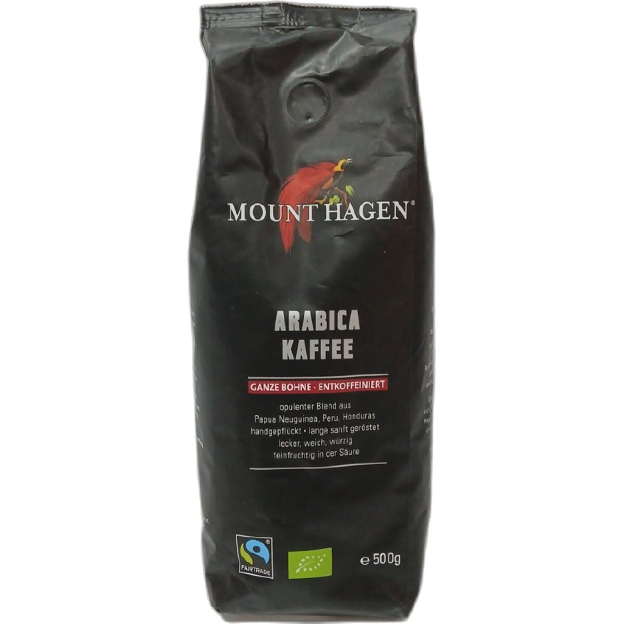 1 Stk. Mount Hagen Arabica Kaffee ganze Bohnen, entkoffeiniert je 500g