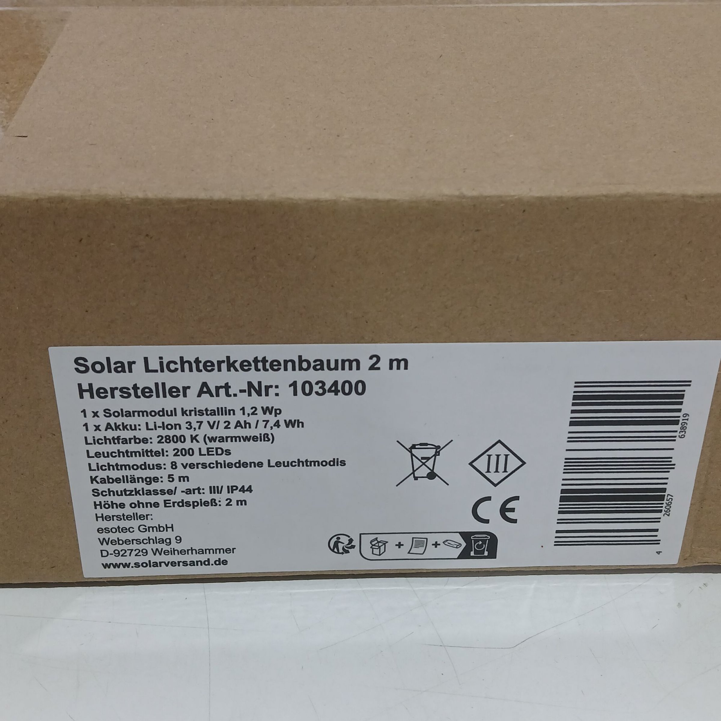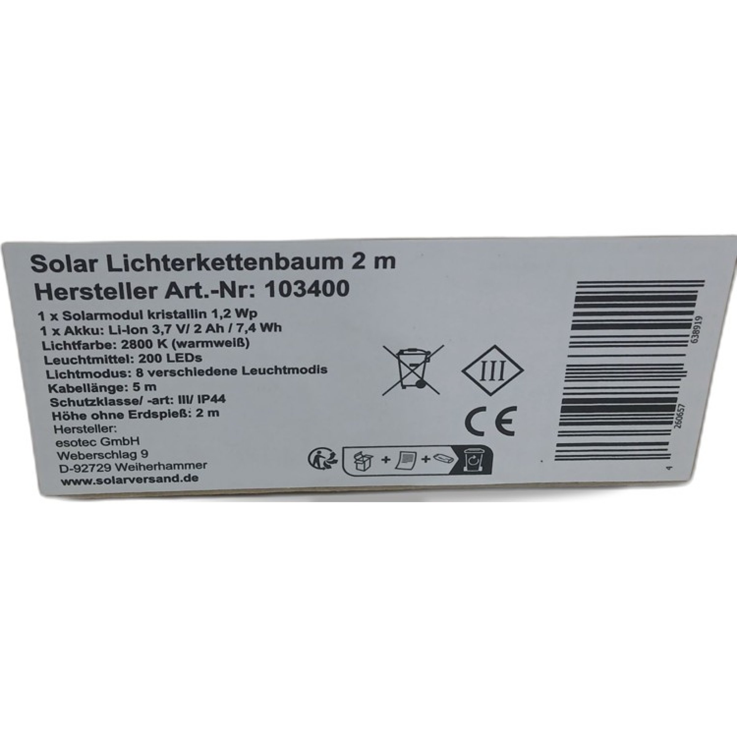 1 Stk. Solar Lichterkettenbaum 2m Art.Nr: 103400
