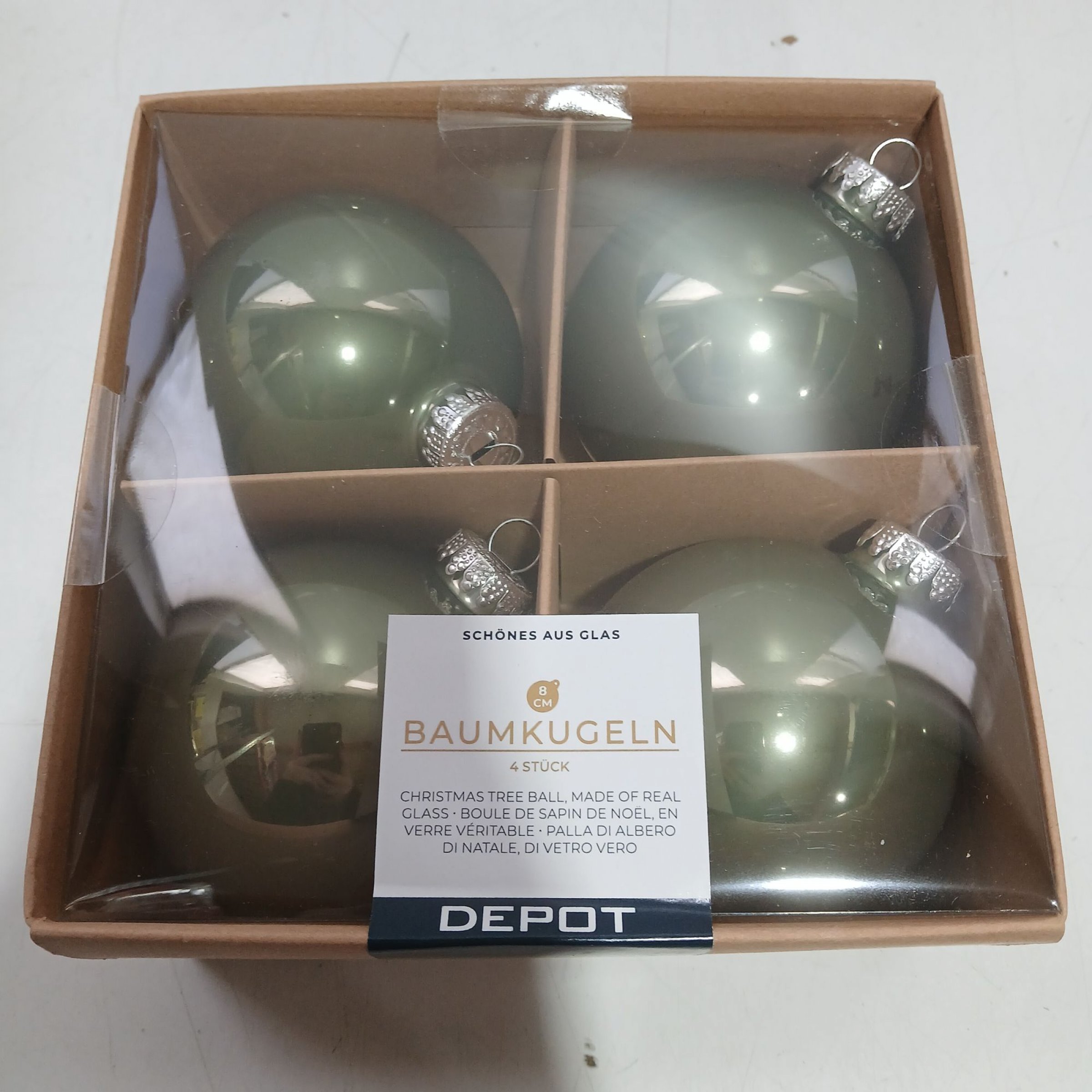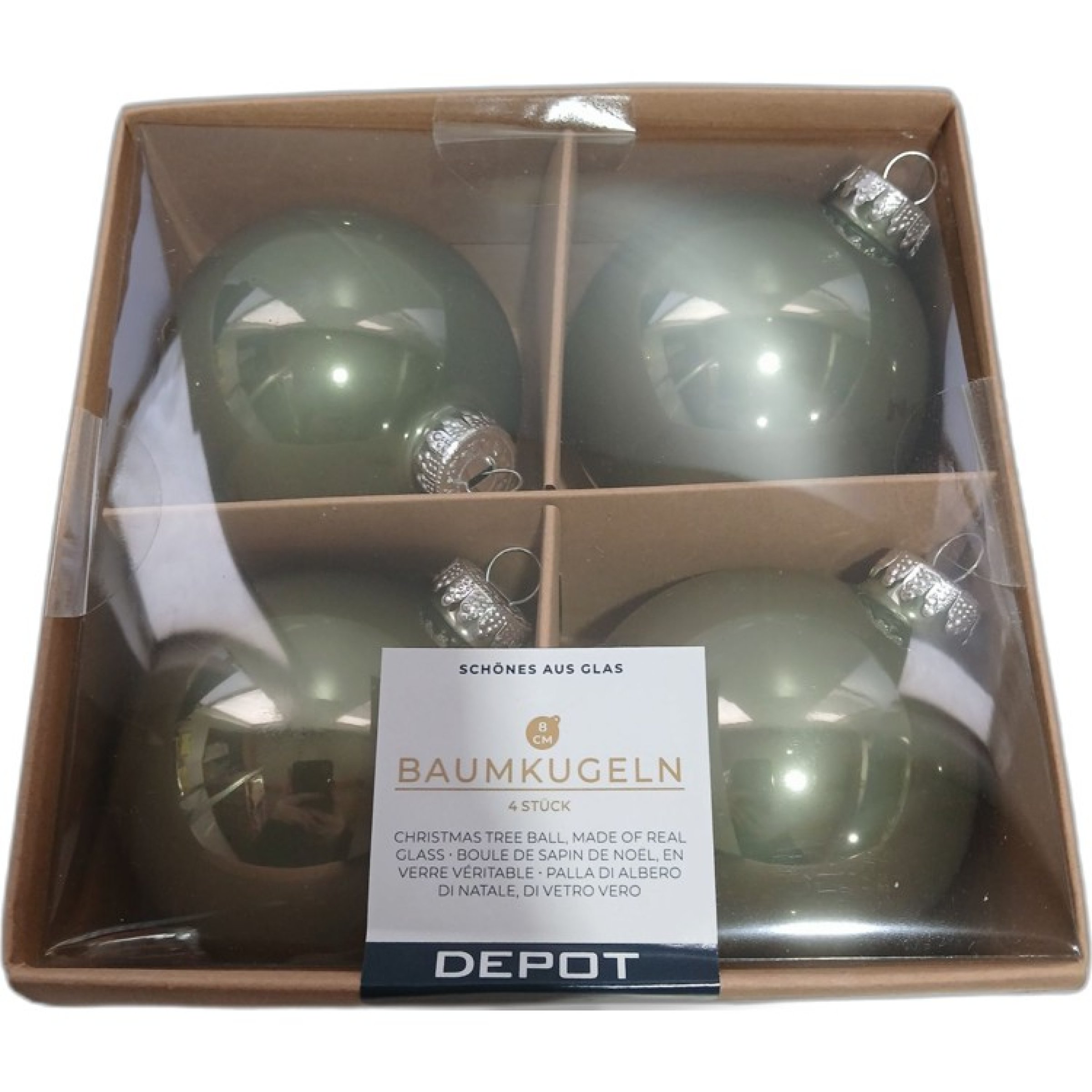 1 Set DEPOT Baumkugeln Schönes Aus Glas 4 Stk helles grün