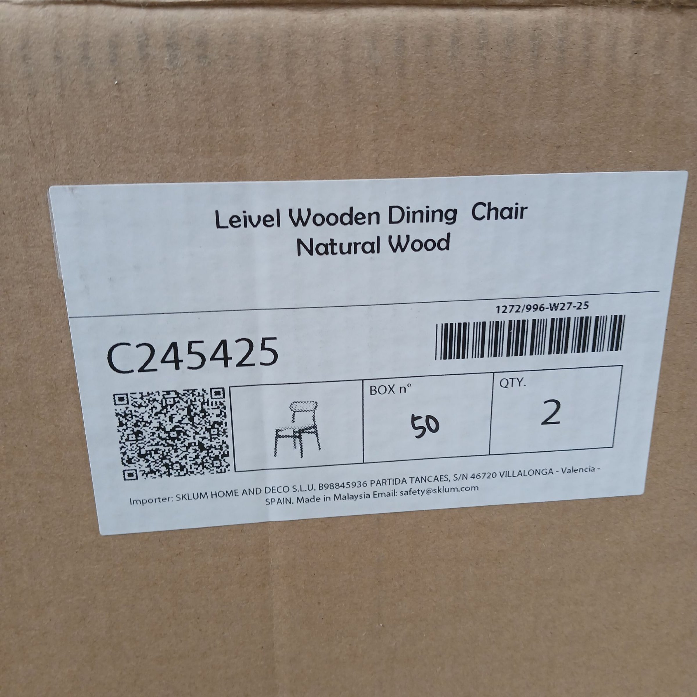 1 Set Sklum Leivel Wooden Dining Chair Natural Wood C245425 2Stk