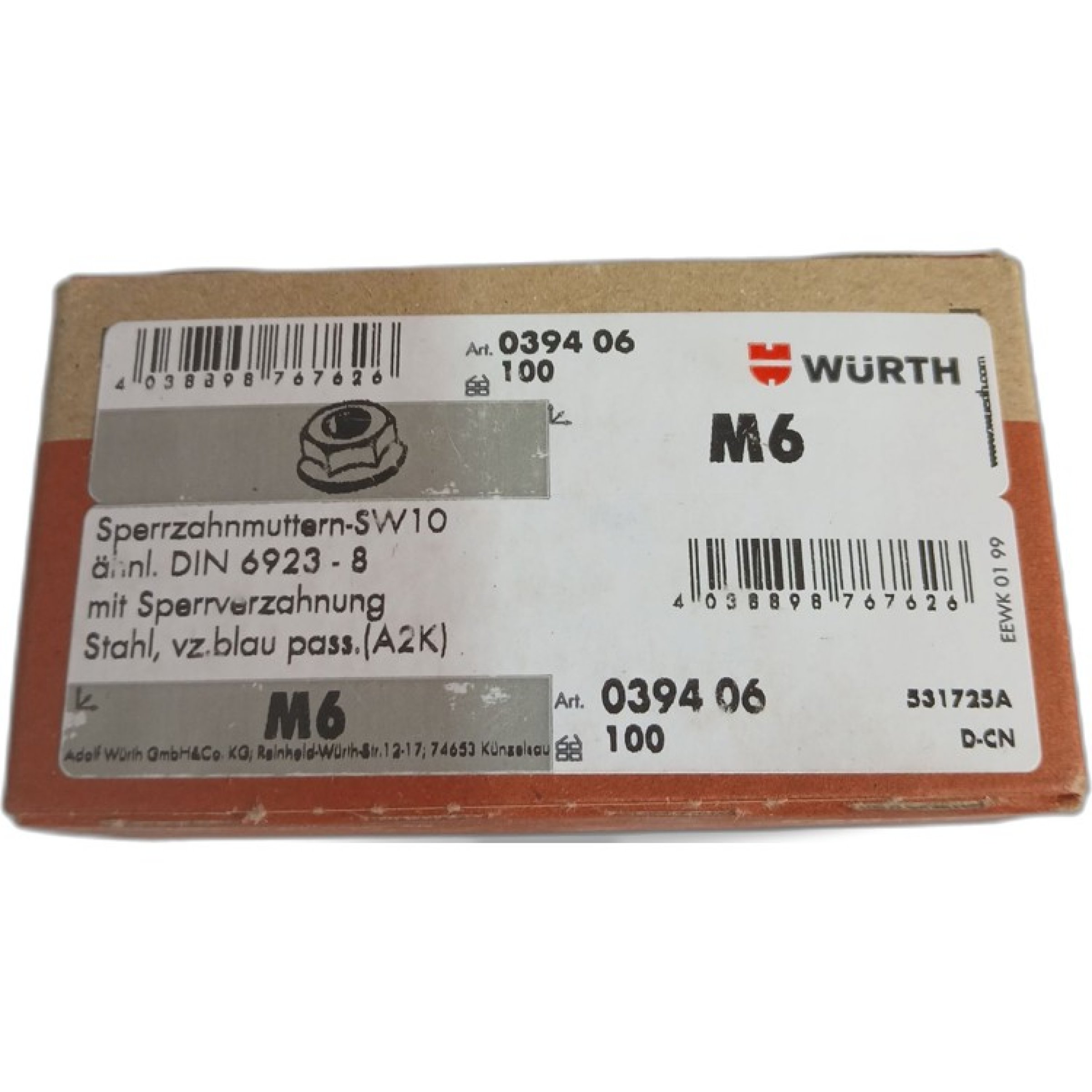 1 Packung Würth Sperrzahnmuttern SW10 ähnl. DiN 6923-8 M6 100Stk