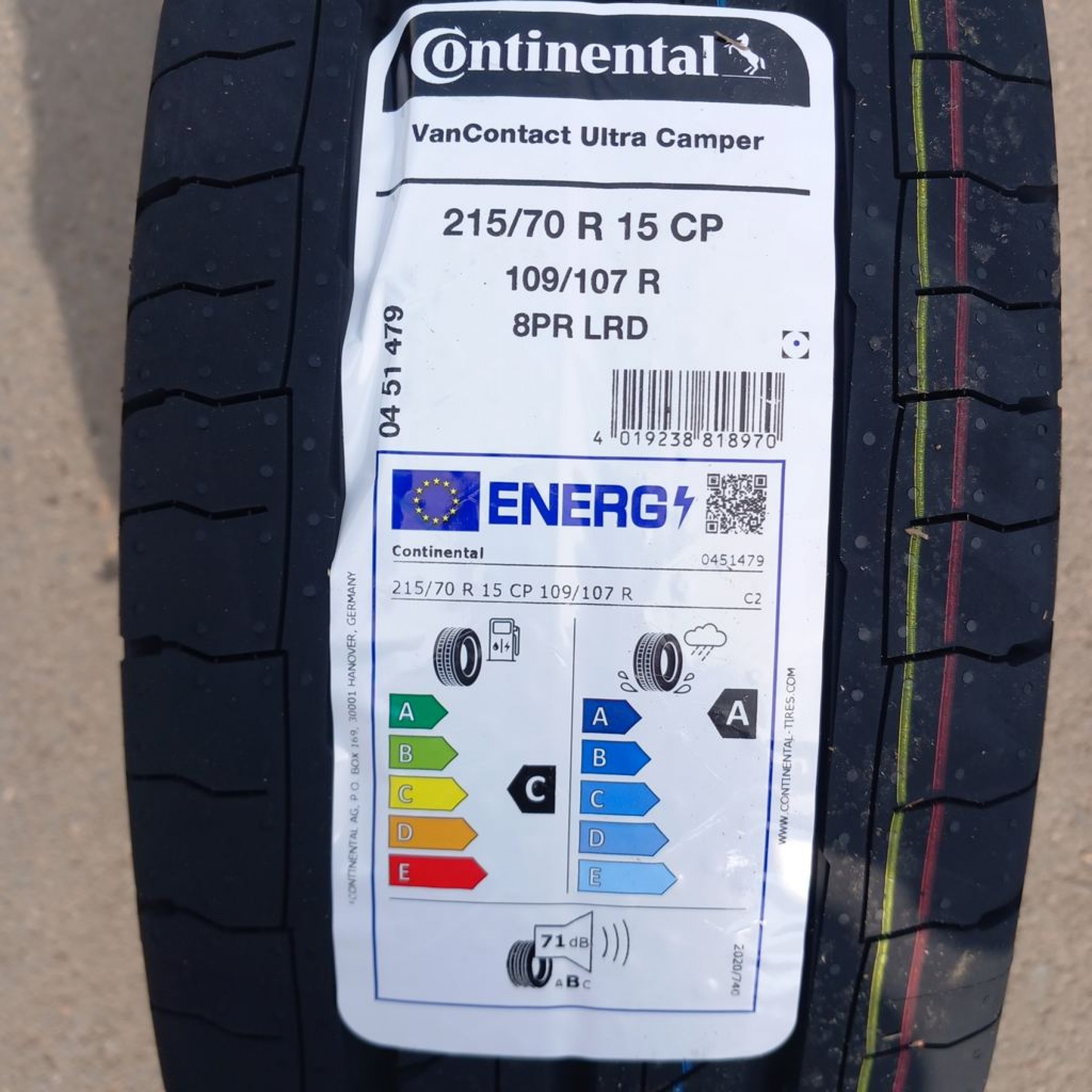 Reifenmaß: 215/70 R15, Tragfähigkeitsindex: 109/107 R, 8PR LRD. Geräuschpegel: 71 dB. Herstellungsdatum: 40
