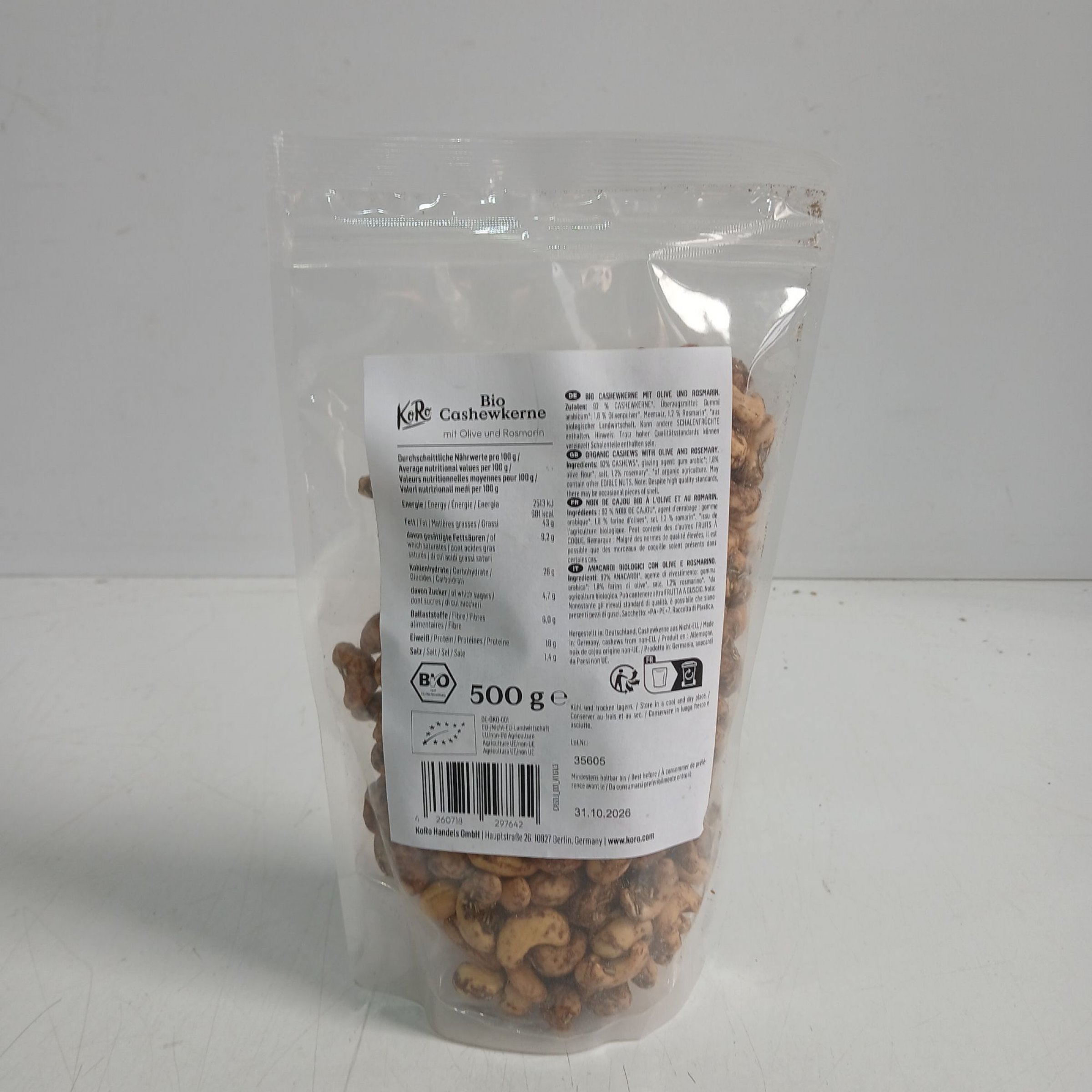 1 Stk. KoRo Bio Cashewkerne 500g