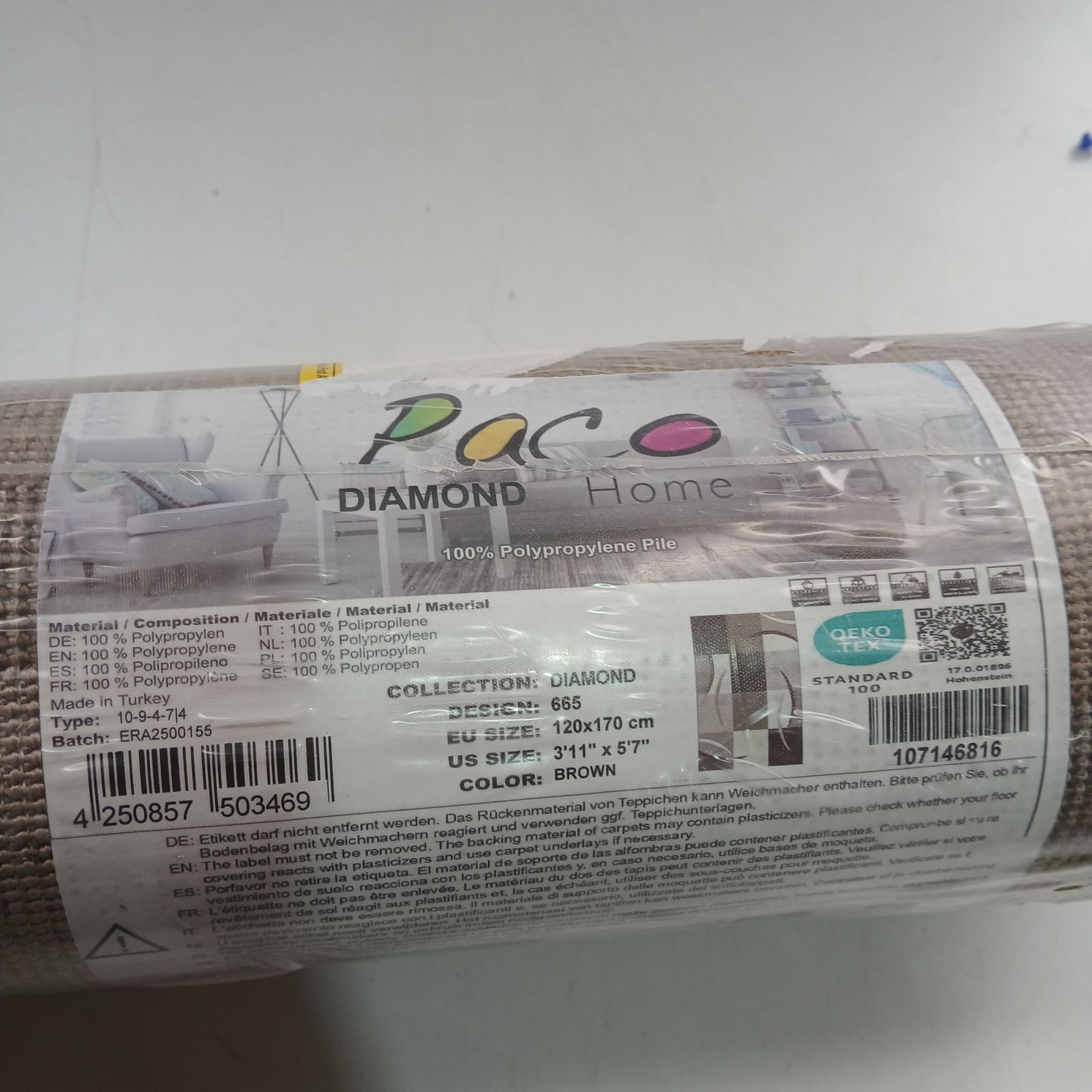 1 Stk. Paco Diamond Home Oeko Tex 665 120x170cm Farbe: Brown
