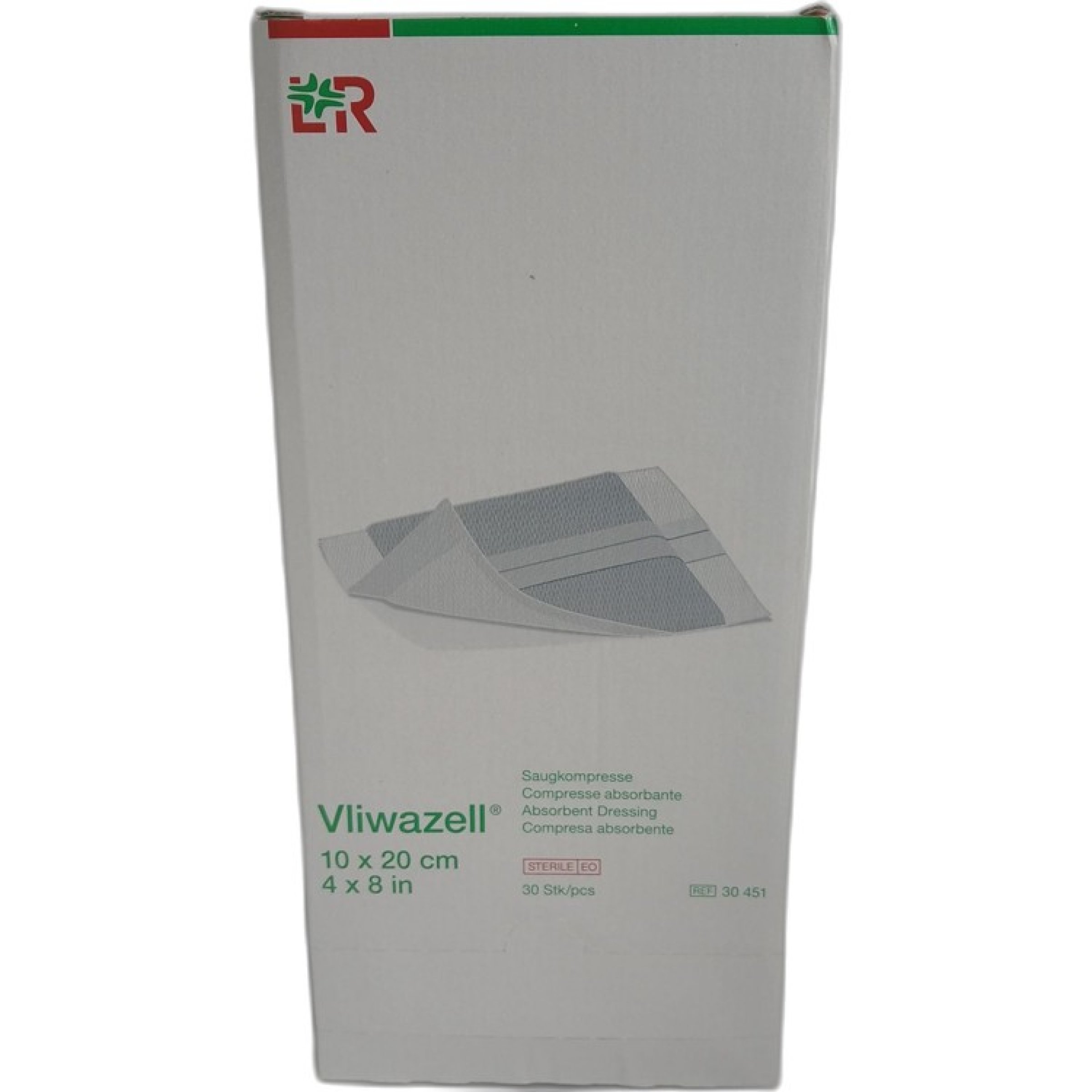 1 Packung LR Vliwazell Saugkompresse 10x20cm 30Stk