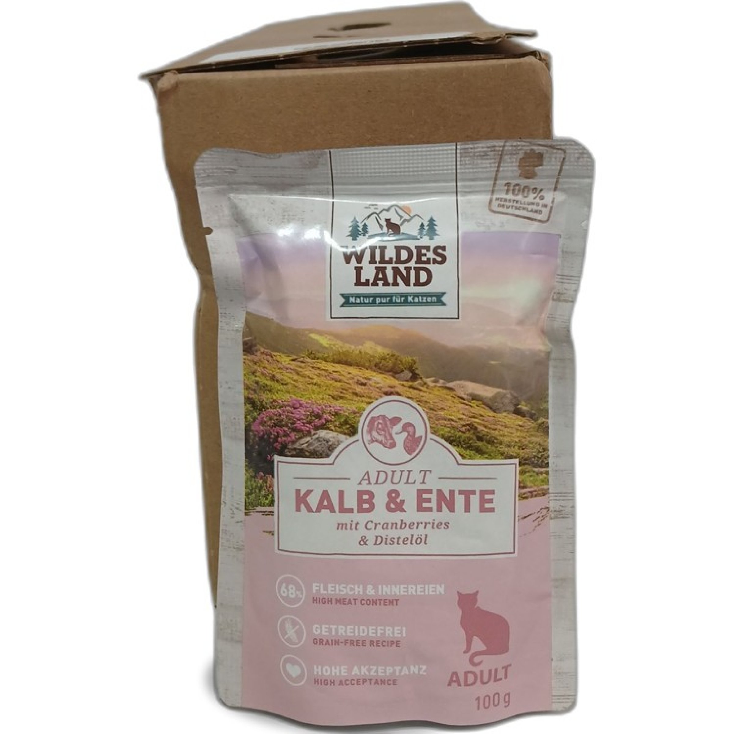 1 Packung Wildes Land Adult Kalb&Ente 12x100g