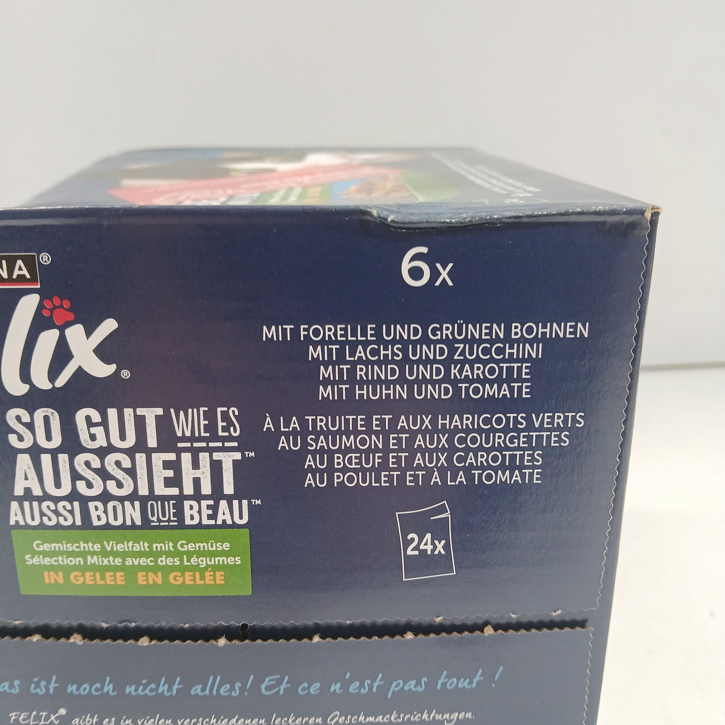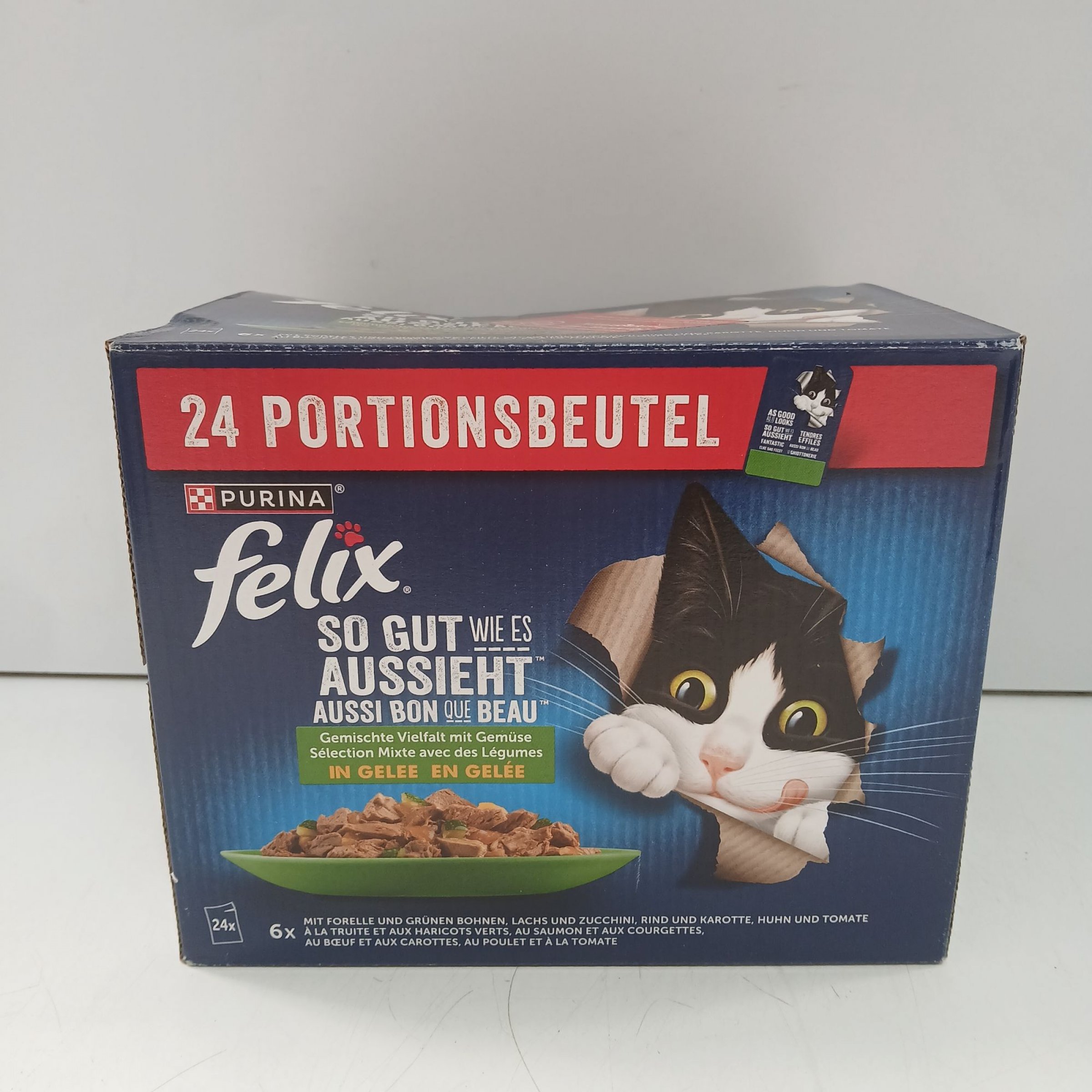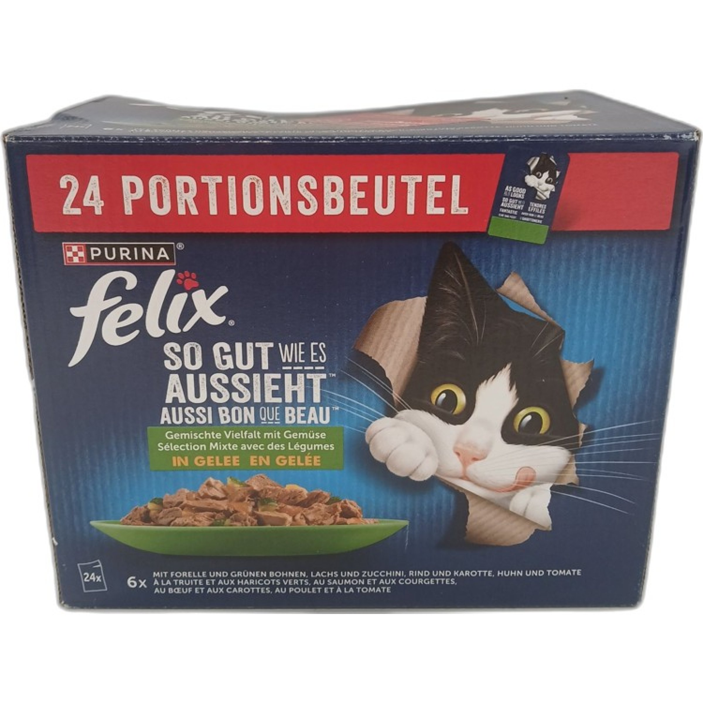 1 Packung Purina Felix Gemischt Vielfalt mit Gemüse in Gelee 24x85g