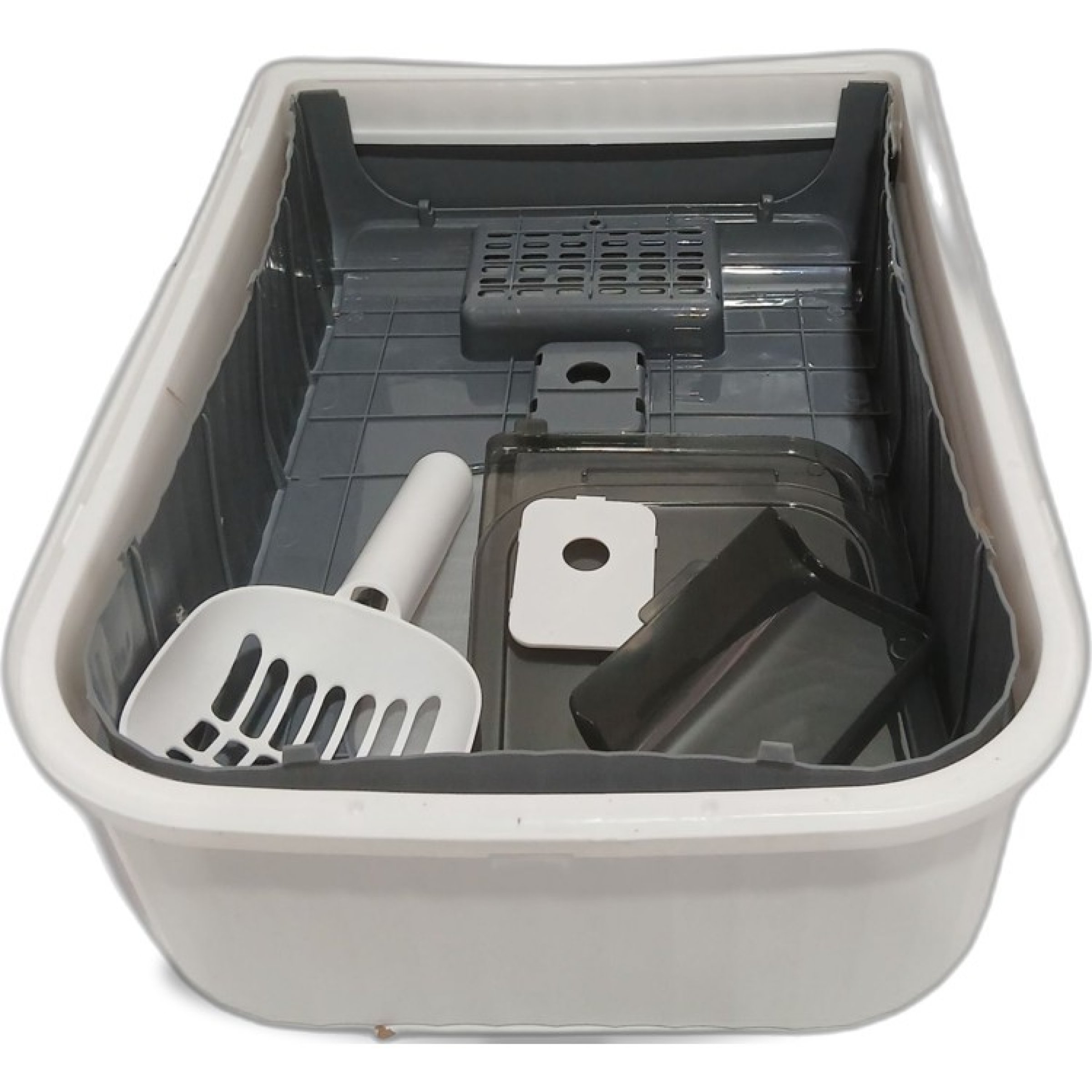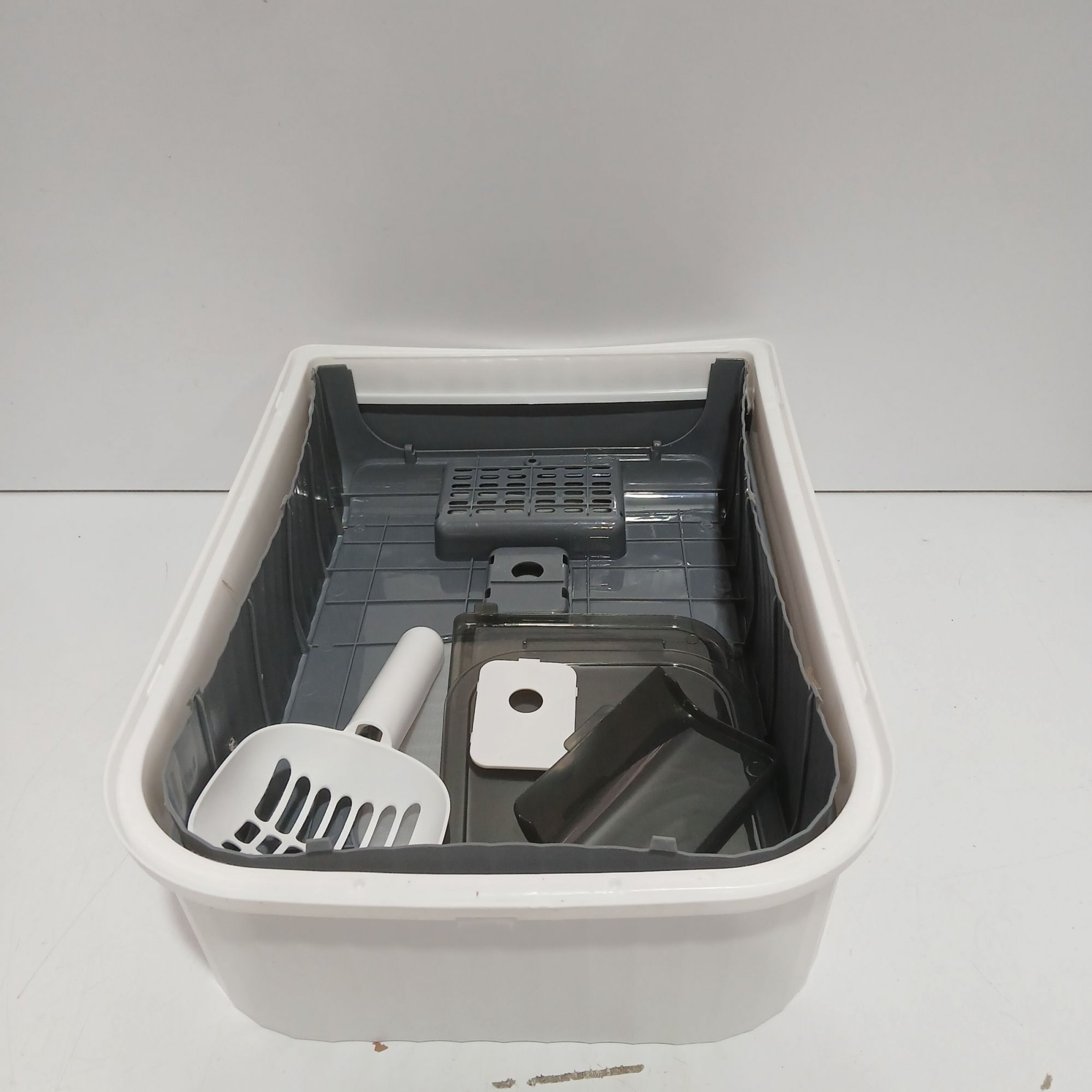 1 Stk. Katzenklo mit Zubehör weiß grau 35x14x49cm