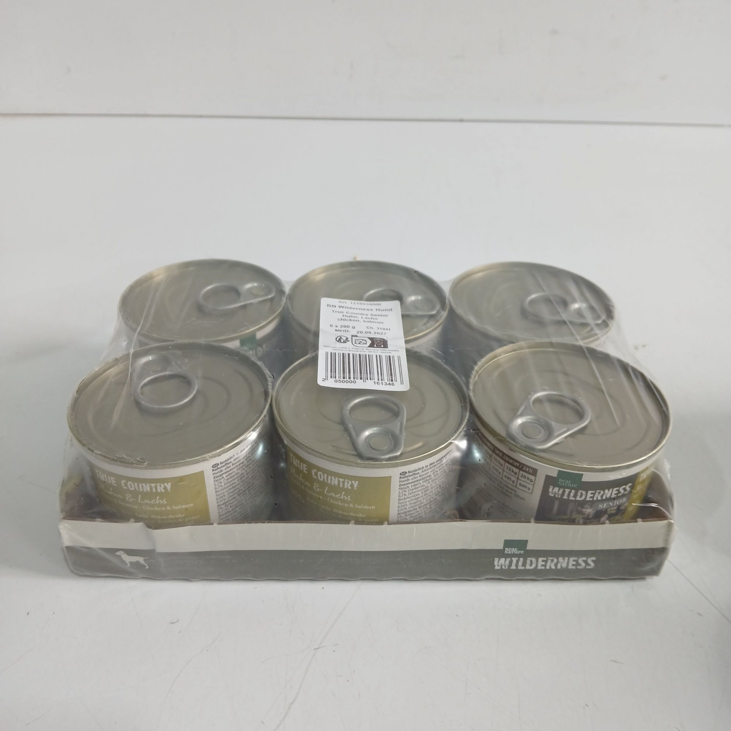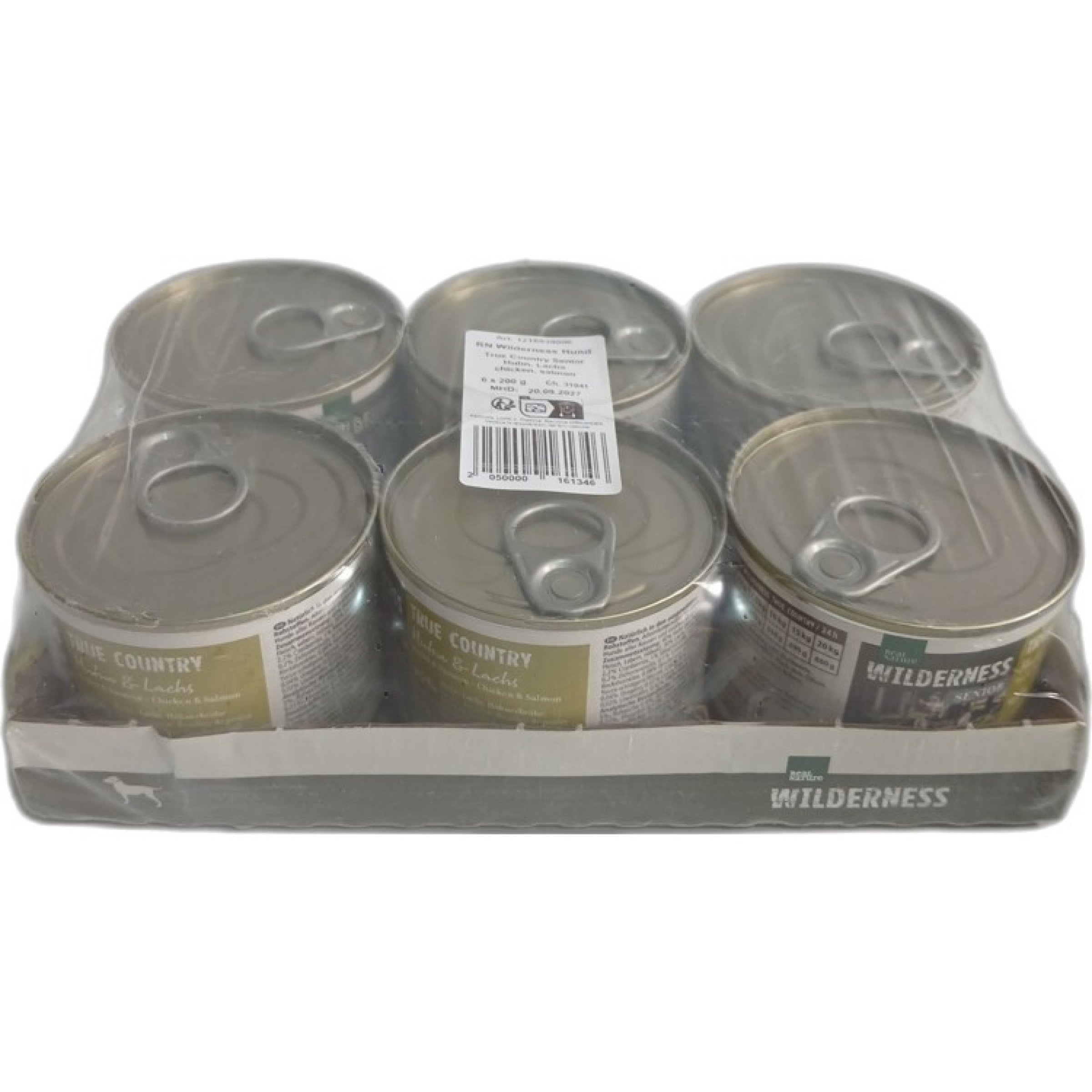 1 Packung Real Nature Wilderness Hundefutter True Country Senior Huhn, Lachs 6x200g