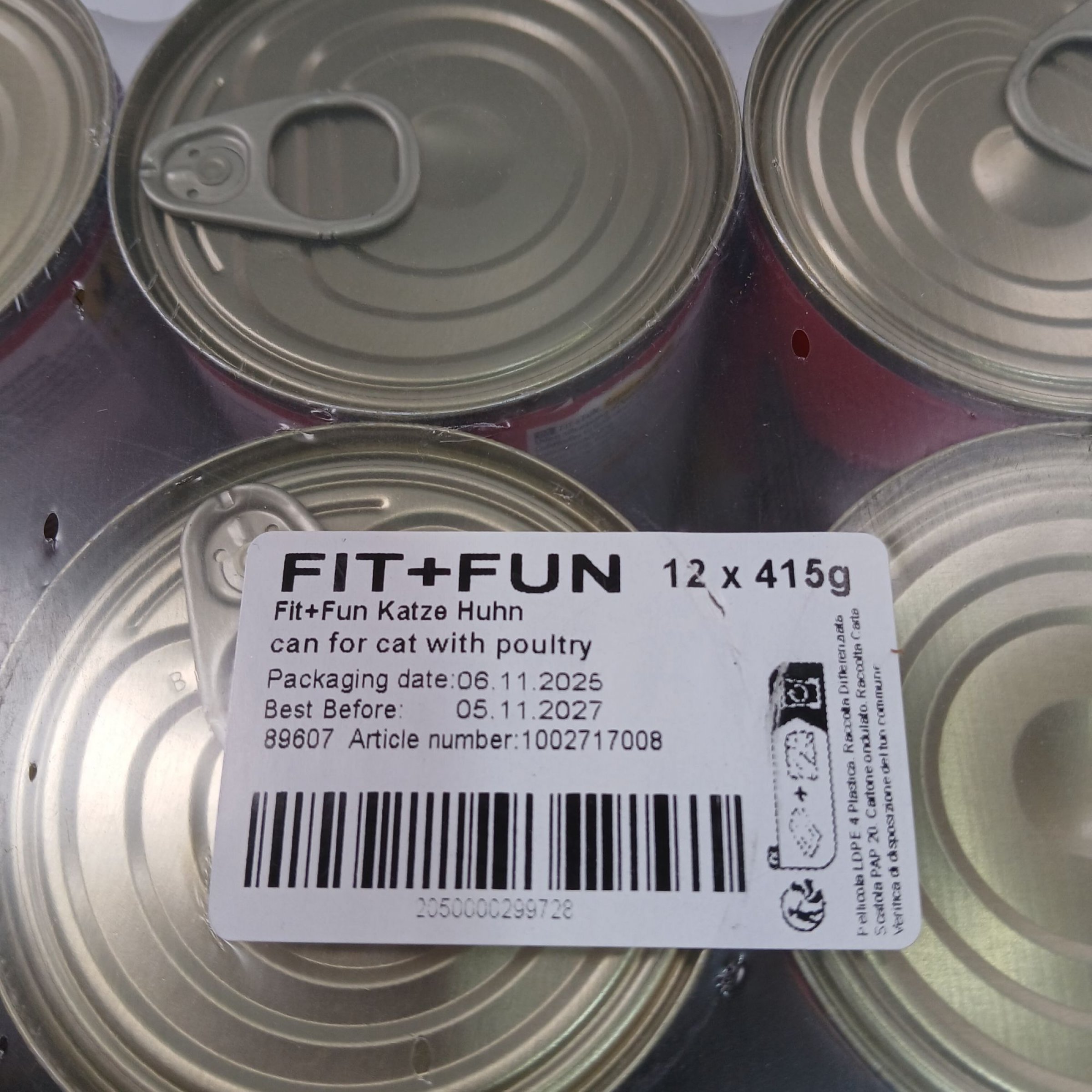 1 Packung Fit+Fun Katze Huhn 12x415g