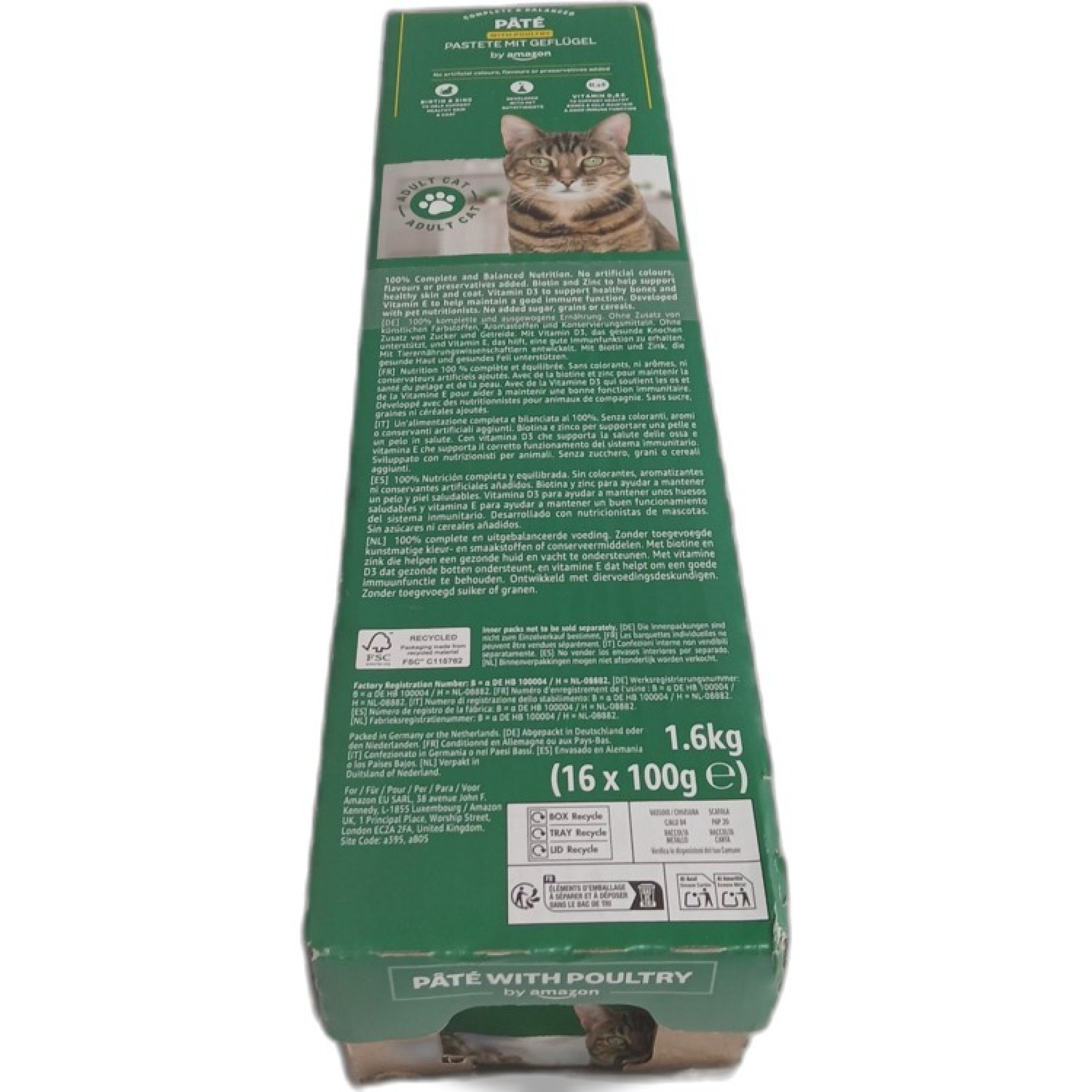 1 Packung Amazon Katzenfutter Pastete mit Geflügel 16x100g