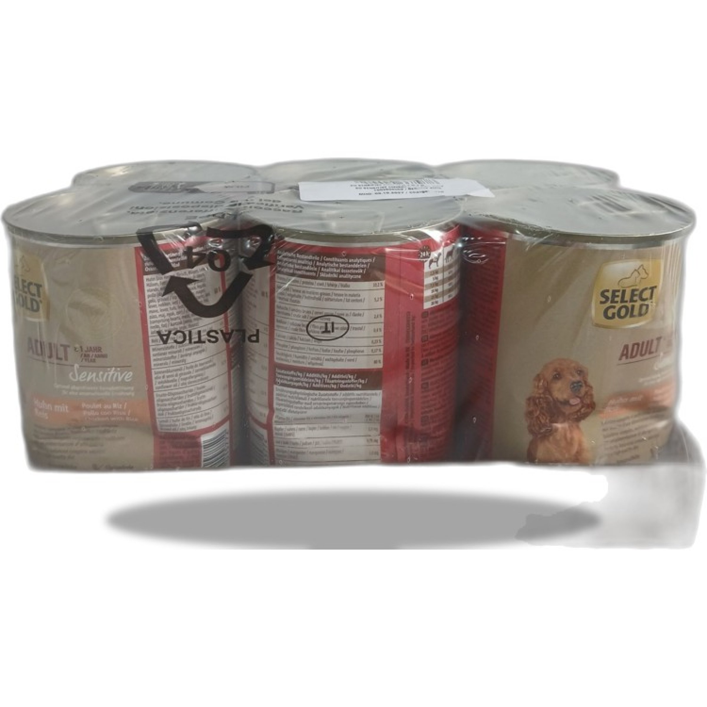 1 Packung Select Gold sensitive Adult Hundefutter Huhn mit Reis 6x400g