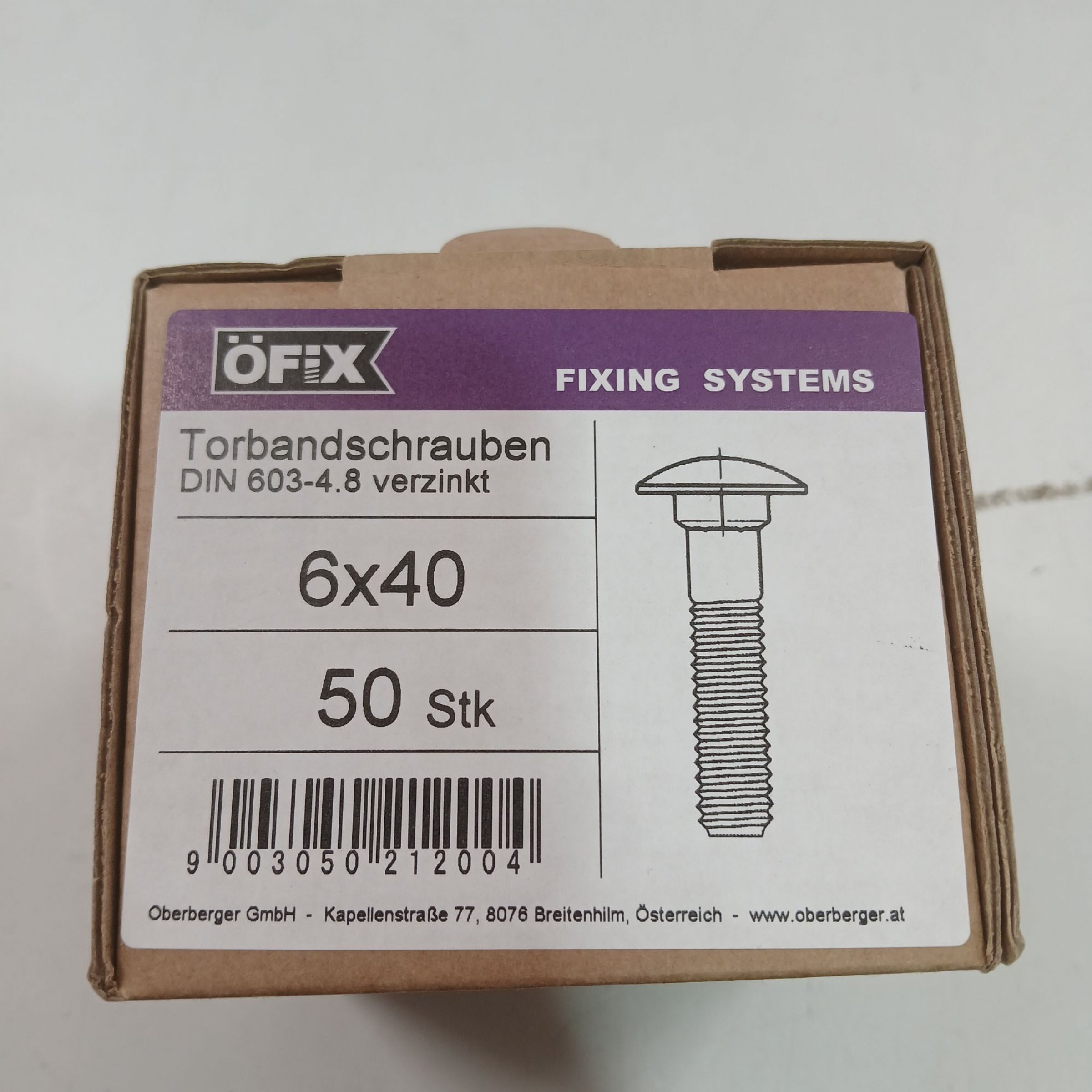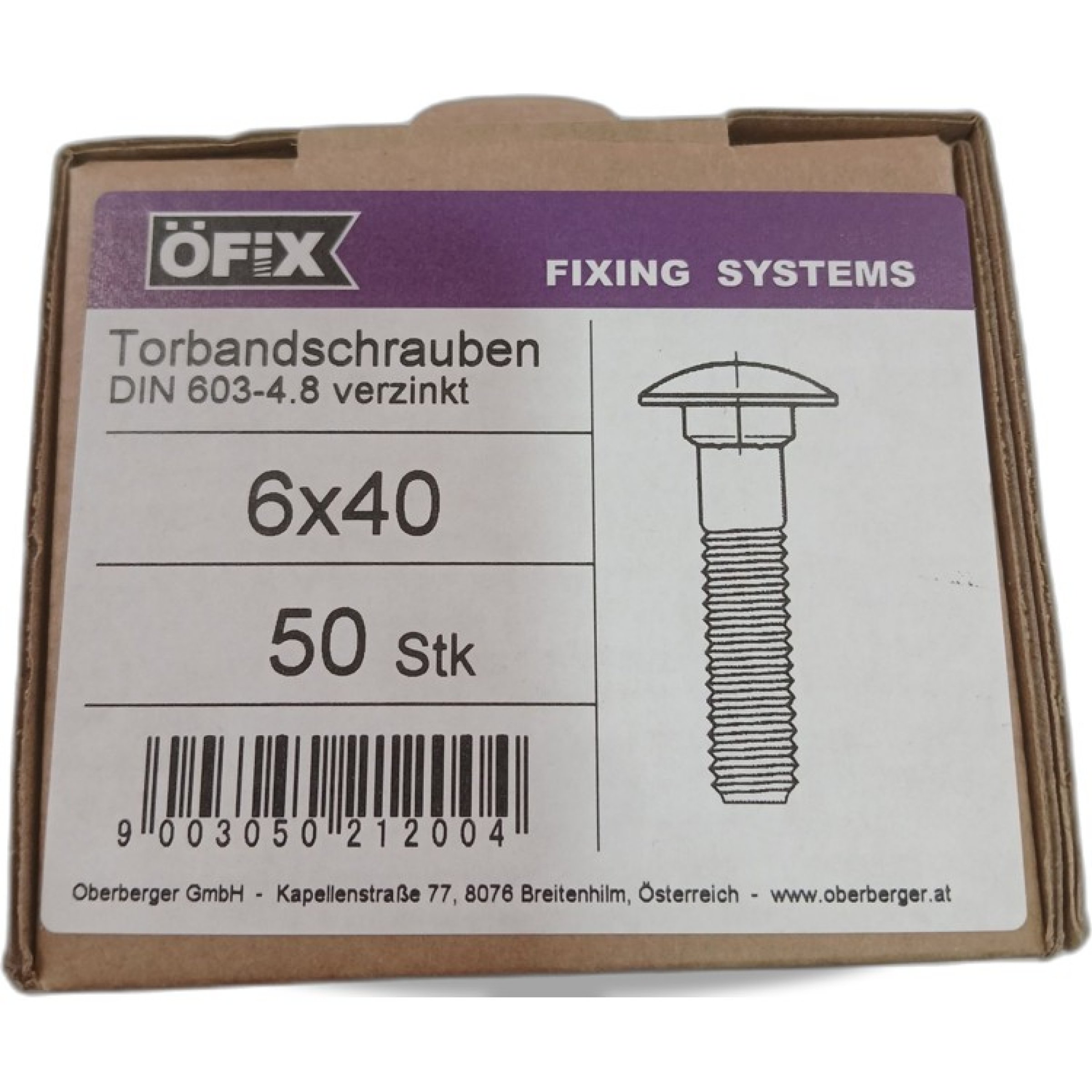 Artikel Nr. 959217: Öfix Fixing System Torbandschrauben DIN 603-4,8 verzinkt 6x40 50stkArtikel Nr. 959217: Öfix Fixing System Torbandschrauben DIN 603-4,8 verzinkt 6x40 50stk