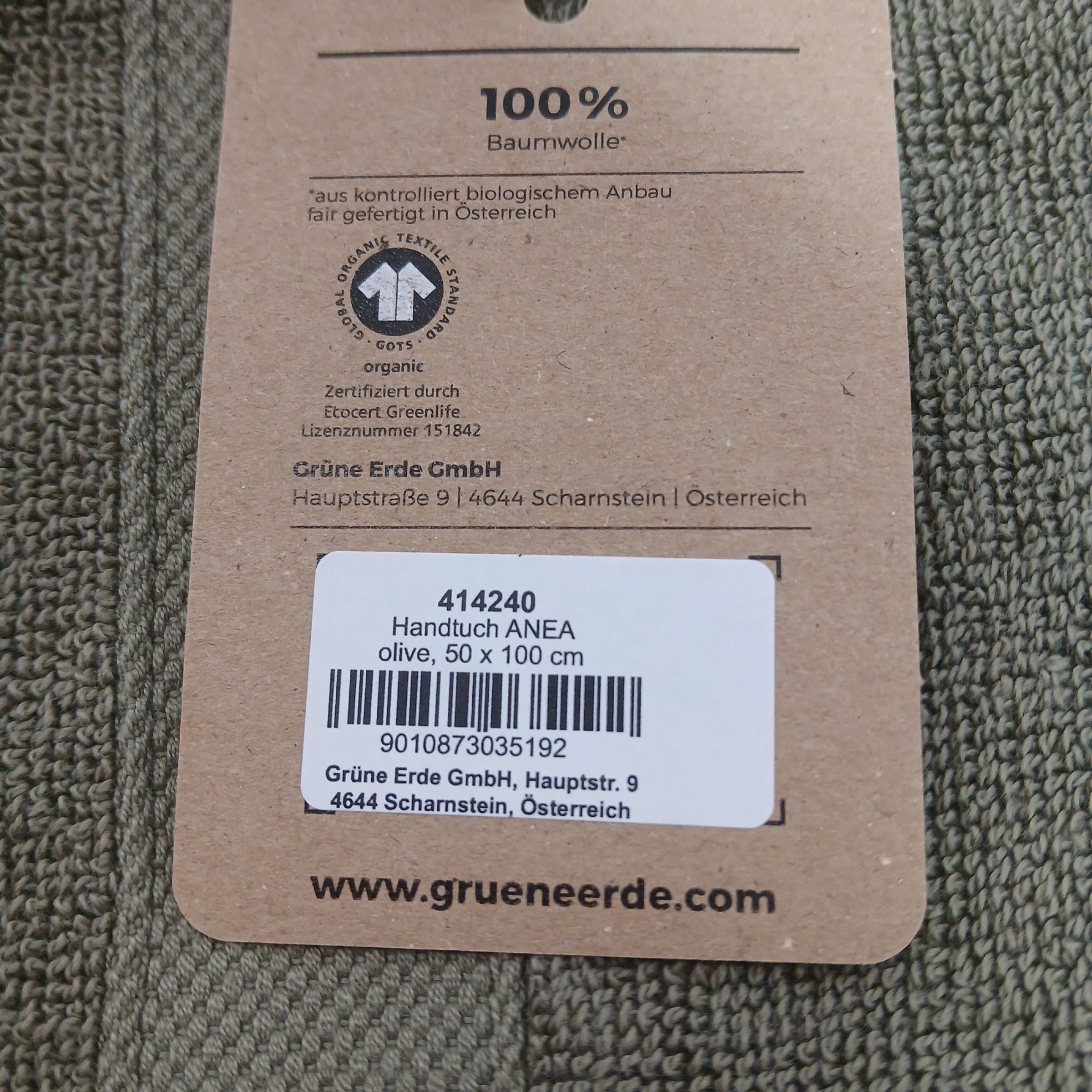 Grüneerde Handtuch ANEA olive 50x100cm 414240